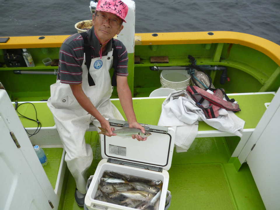 アジは久里浜沖を狙っていきました。潮は上げ潮の一日でした。深場の釣りでしたが、アジの活性は高めでした。フグなどハモノの邪魔も多かったが一日ダブル、トリプル交え釣れました。型は中アジ中心に大アジ混じりでした。今日のトップは101匹と大漁、晶ちゃんでダントツの釣果でした。皆さん本日もお疲れ様でした