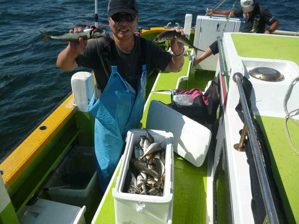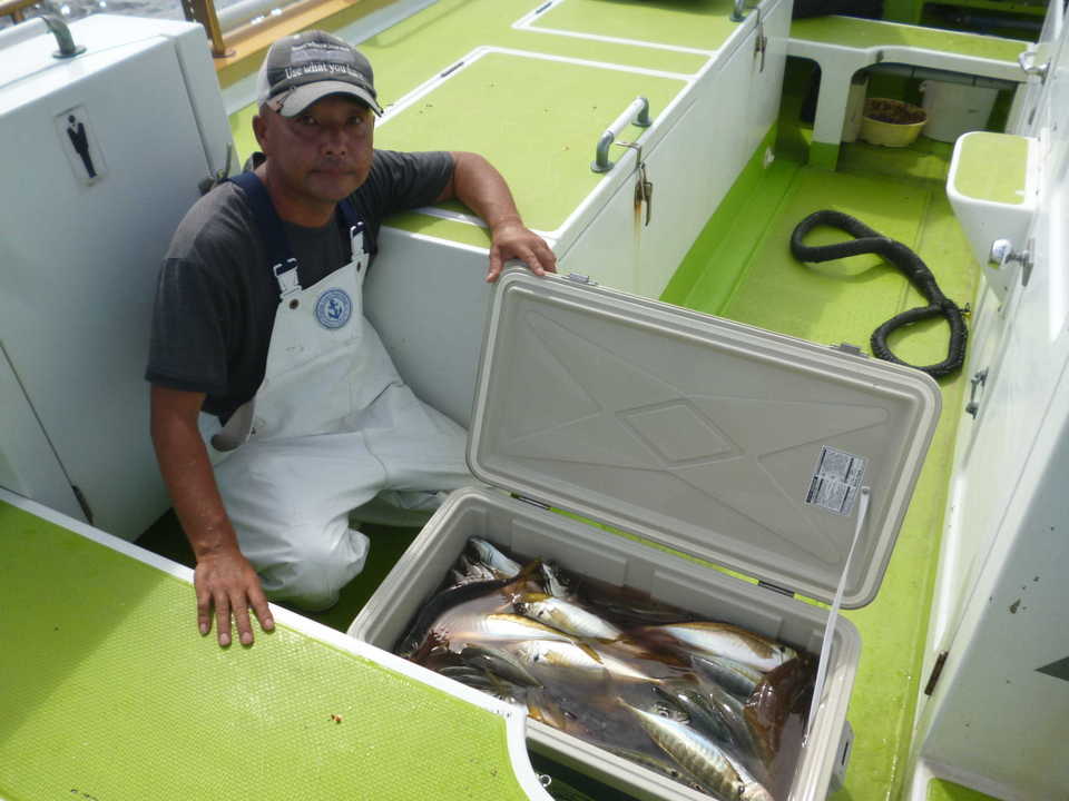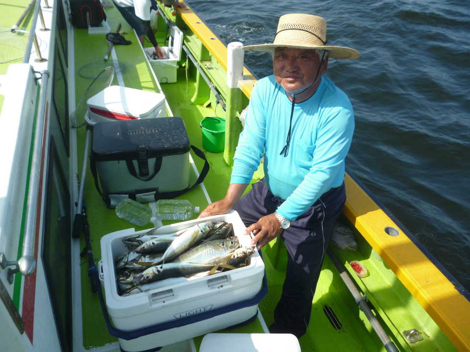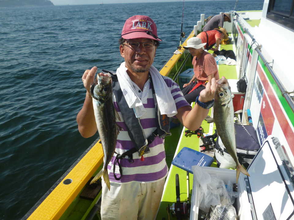 22~34cm 30~86匹 カンコ アジは観音~久里浜沖を狙っていきました。潮は上げ潮から下げ潮で、若干速めに流れる時間もありました。観音沖から始めましたが反応少なく、河豚の邪魔もすごく型程度の食いだったので久里浜沖に移動しました。久里浜沖は潮色澄んでいて深場の釣りとなってしまいましたが、アジの活性は良くダブル、トリプル交え釣れました。型は中アジが主体でした。今日のトップは86匹、桑原さんでダントツの釣果でした。皆さん本日もお疲れ様でした