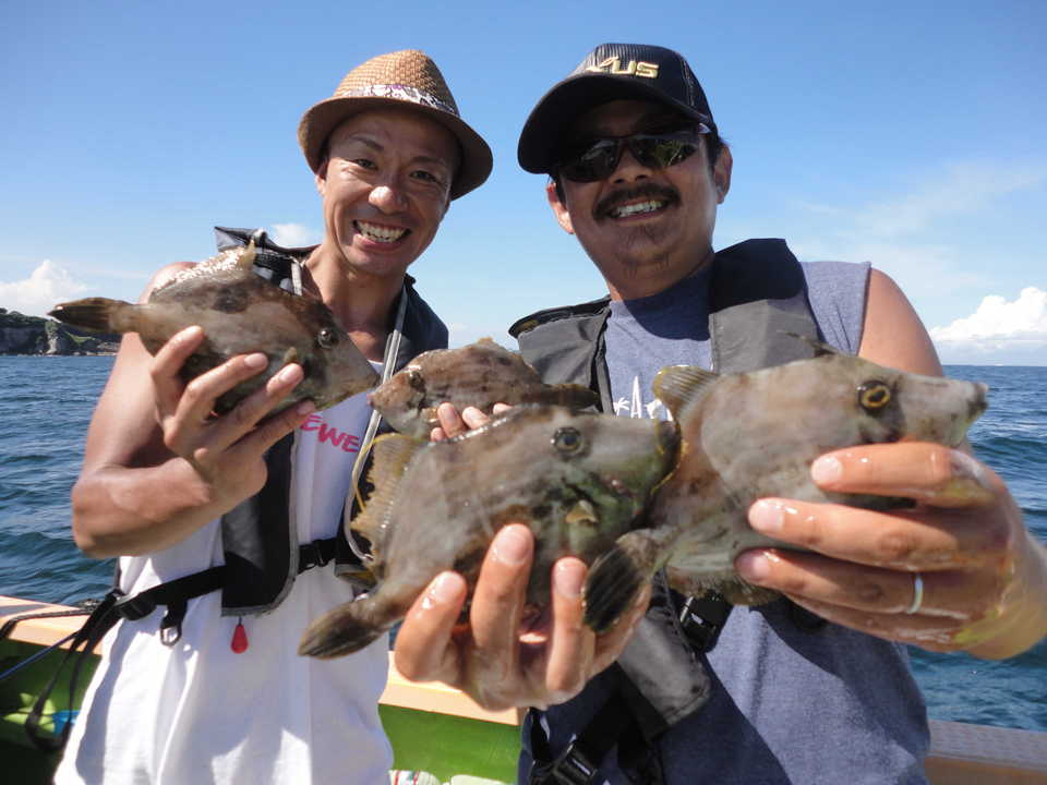 16~28cm 3~27匹 乗合2隻で鴨居沖30m前後の深場ポイントを中心にやって行きました。 海上はウネリが残ってましたが、昨日の極寒を思うと暖かで、風も穏やかな良い陽気でした。 水温は14℃位の低水温でしたが、カワハギのアタリは昨日と同じ感じで前半の上潮、後半の下潮共に潮に流れながら船中ポツポツ釣れてました。 多少のウネリがあったので、巻き上げが上手く出来てない方はバラシが多くありました。 今日はダブルの場面が殆ど見られなかったですが、連チャンは度々ありました。 潮止まりの時間帯がテクニカルなので、このタイミングにアタリを出せると釣果アップに繋がると思います。 ウネリと低水温の悪条件でしたが皆さん健闘して貰えて、良型混りで今日も好釣果に持って行けました。 トップは名手.佐藤さんが難しい小さなアタリも上手くキャッチして27枚の好釣果、次いで山崎さん18枚、萩原さん17枚…と続きました