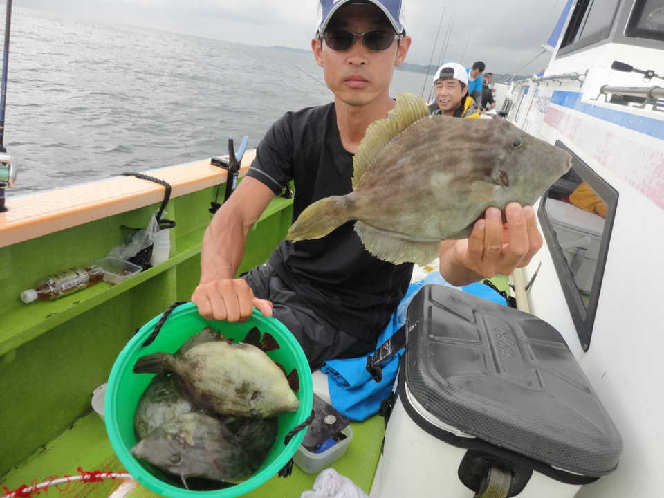 16~28cm 1~14匹 乗合と仕立船に全船で竹岡沖からスタートしました。 極寒な天気と共に水温も16℃に下がった為か、カワハギの活性が上がらず苦戦を強いられました。 先日アタリが多かった20m前後のポイントから、航路ポイントの30m前後まで転々とアタリの多く出る好ポイントを探索して行きましたが、船中までアタリが出る場面が少なく、粘れるポイントが少なかったです。 後半は鴨居沖に移動しました、こちらでは船中ポツポツ釣る事が出来て、名手は連チャン場面も見れました。 ただ盛り返しには勢いがイマイチで、時間切れでした。 急な水温低下で活性が下がったカワハギに上手く立ち回れず苦戦してしまいました。 それでも皆さん極寒の中、定刻まで大健闘して貰えて、女性の方もダブルを決めてツ抜け達成出来てました。 トップは名手.青木さんが14枚、次いで沼山さん11枚と続きました。