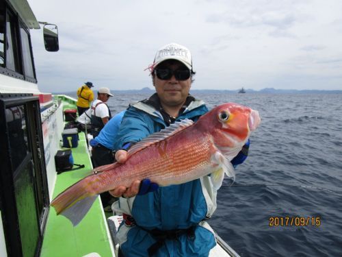 21~47cm 2~8匹 オニカサゴ ホウボウ イトヨリ カイワリ アマダイ船。下浦沖から保田沖を転々と狙い、日並良く風弱かったもののウネリが1日有りました。 1日を通してあまり潮が流れず外道のアタリ少なかったが、良い流しには手の合った方はアマダイ連発し船中ポチポチと拾え、サイズは中型主体に良型多く大型46.5cm・46cm混じりで終日ポツリポツリと顔見れました! トップは良型主体に大型46cm含み8尾、2番手7尾、3番手は大型46.5cm含み6尾、裾2尾でオデコ無く全員ゲット出来ました!シロアマダイは小さいのいましたが良型40㎝・39.5cmも出て船中5尾♪