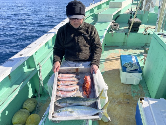 今日も朝一はフラッシャーサビキ黒むつ五目へ。黒むつは良型多く混じり2匹?〜トップ10匹。2番手8匹、次いで7匹・・・・と良型なのでエード!他の魚もたくさん釣れたようで(^。^)! 後半のヤリスルメイカは短時間ながら皆さん顔見れてトップ4杯。反応は多かったそうですよ。 本日はご乗船ありがとうございました。またよろしくお願いします。 明日2/3火曜日は定休日。 4日水曜日午前船はフラッシャーサビキ黒むつ五目(寒サバも?)〜ヤリスルメイカでまだ空きたくさんあります。2:45までに集合。 ご予約、お問い合わせお待ちしてマース! ほな、ばいなら〜