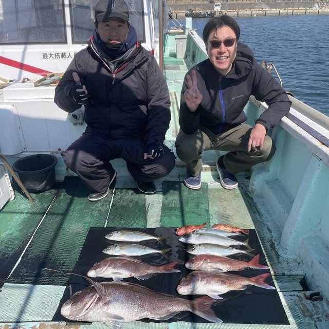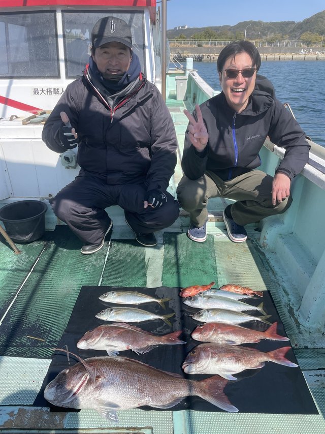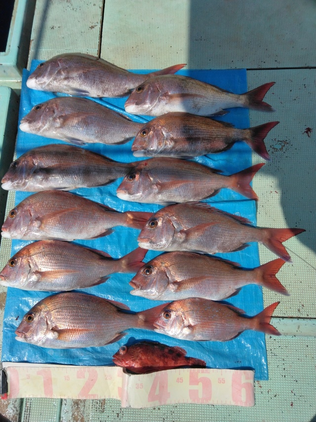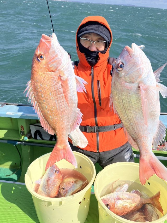 竿頭12匹 風・・・北。 マダイ仕立。今日は釣り日和で釣れました。潮の変わり目当たり良く楽しめました。反応も多く今後も楽しめそうです。1月2月は特に脂が乗っております。