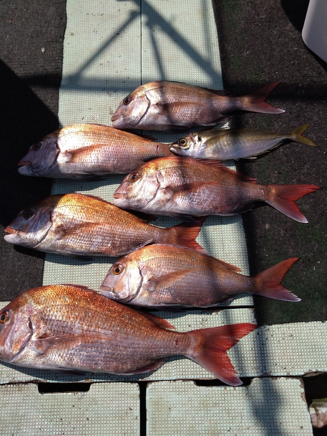 イナダ ハナダイ サバ カワハギ マハタ ライトタックルマダイ船。 今日も7時に出船しました!前半、今後にマダイが釣れた感じです。イナダも混じりました!花ダイ、大サバが混じりました。今後も宜しくお願いします!