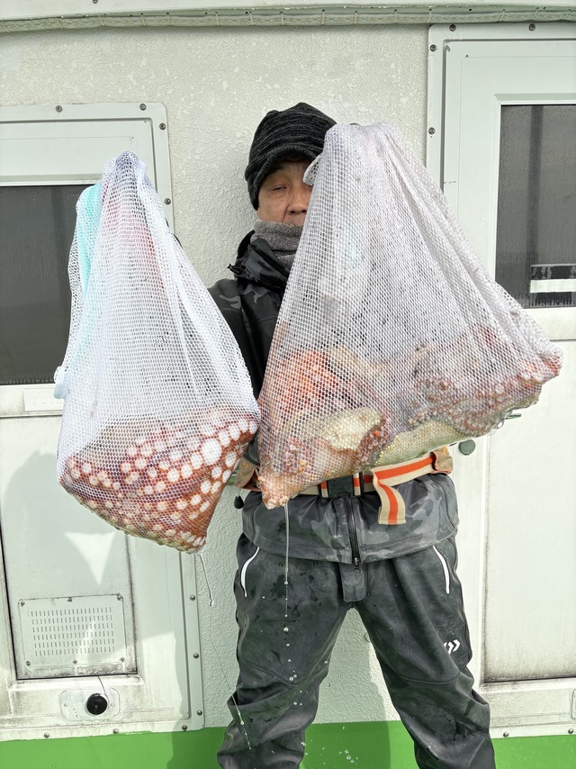 1.00~3.00kg 1~4匹 こんにちは。 メンテナンス終わり、明日よりタコ出船します。 冬なので出れば大型です。 同じポイントでカレイも釣れるので、タコに飽きたら是非チャレンジしてみてください。 カレイのエサは持参お願いします。