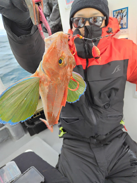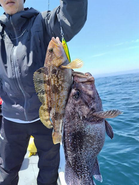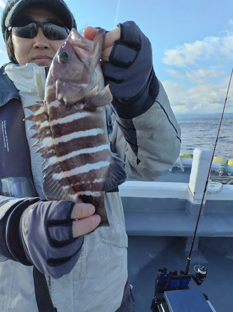 (チダイ)30~31cm 合計2匹 マダイ 62cm 合計1匹 ジガーズ2(J2)にて マダイ五目ジギング マダイ。62。1匹。 ハナダイ。30。31。計2匹 ヒラメ。 クロメバル。 アイナメ。 マゾイ。 ホウボウ。 カナガシラ。 ミズカレイ。 カサゴ。 マサバ。 リュウグウハゼ。 【水温】13.4℃ 【水色】やや濁り 【コメント】静かな海で潮も流れずシブイ。終了間際に良型マダイ釣れました。お疲れさまでした。