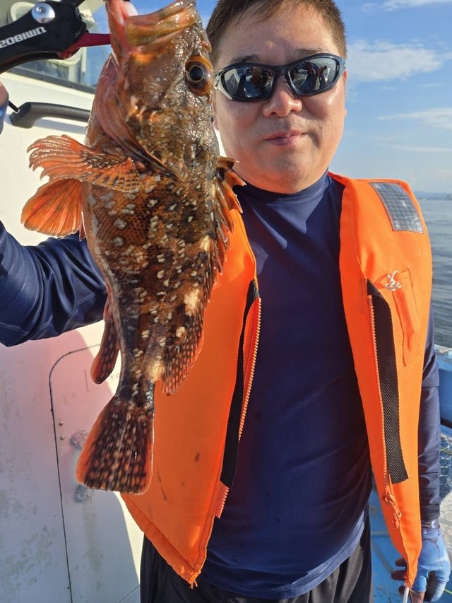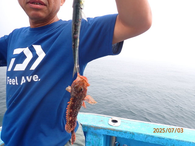 42~43cm 合計2匹 マダイ 48cm 合計1匹 チャリコ 20~35cm 合計15匹 ハナダイ 25cm 合計1匹 ジガーズ2(J2)にて マダイ五目ジギング マダイ。48。計1枚 チャリコ。20。~35。計15匹。 ハナダイ。計1匹。 アイナメ。 メバル。 ヒラメ。 ガンゾウビラメ。 カナガシラ。 ホウボウ。 ミズカレイ。 サバ。 トラフグ。 【水温】27、3℃ 【水色】うす濁り 【コメント】本日は、小さなチャリコが多く、大鯛には巡り合えませんでした。お疲れさまでした。