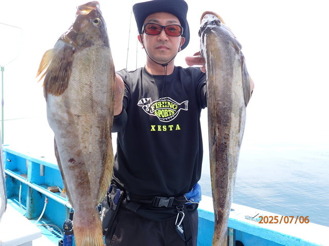 45~50cm 0~1匹 ヒラメ 52~83cm 1~8匹 イシナギ 50~55cm 0~1匹 7月21日(月)豊漁丸ヒラメ船釣果報告 【釣果】 ・ヒラメ52~83cm(船中50匹)※リリース5匹 ・マゾイ ・黒ソイ ・アイナメ(船中2匹) ・黒メバル ・イシナギ(船中4匹) ・サメ ・水カレイ ・ガンゾウヒラメ ・サバ 【天気】 【水温】23.2℃ 【水色】やや濁り 【コメント】 ~ヒラメダービー開催中~85cmから測定 暫定1位94cm(8.4kg) 暫定2位86cm(5.6kg) ※更新無し 朝からポツポツ釣り、今日も相変わらず甘噛みすっぽ抜けが 多数でした。リリースは少なめで良いのですが... 皆様お疲れさまでした。 ※自然保護の為、50cm以下のヒラメは放流しています。 50cmに満たないヒラメは速やかにリリースしていただきます。