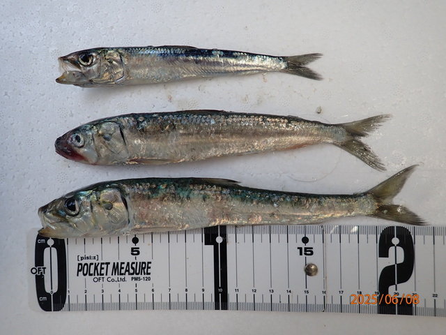 49cm 合計1匹 マゾイ 35~53cm 1~7匹 イシナギ 48cm 合計1匹 メバル 25~40cm 2~6匹 6月8日(日)豊漁丸中深場イワシ五目船釣果報告 【釣果】 ・マゾイ35~53cm(1-7匹) ・イシナギ48cm ・沖メバル25~40cm(2-6匹) ・アイナメ~49cm ・トラフグ3kg ・サメ ・サバ ・ウッカリカサゴ 【天候】晴 【水温】17.2℃ 【水色】やや濁り 【コメント】 今季初の活イワシで中深場行きましたが、期待と裏腹に特大アイナメ、イシナギ、顔は見れましたが爆釣はしませんでした。皆様お疲れ様でした。 ※イワシの写真を載せます。