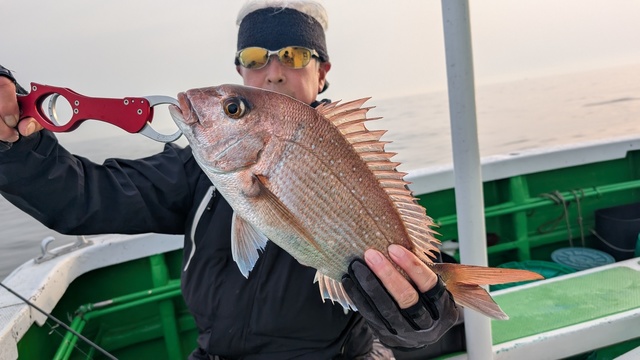 1.02~7.18kg 0~6匹 ◆午前テンヤマダイ船 3隻の高低差 1キロ台13枚 2キロ台15枚 3キロ台4枚 4.15キロ、4.26キロ、4.52キロ、4.55キロ、5.12キロ、7.18キロ サイズ1.02~7.18kg0~6枚 竿頭、宗像さん 午前は朝からポツポツ当たり、ラインブレイク、フックアウトも有りましたが、ハナダイも多数掛かり当たり多く楽しめました。 中鯛、大鯛も多数掛りました。 ご乗船の皆さん、大変お疲れ様でした。ありがとうございました。またのお越しをお待ちしております。 明日はショウサイフグ船、テンヤ真鯛午前、午後の出船です。宜しくお願い致します。