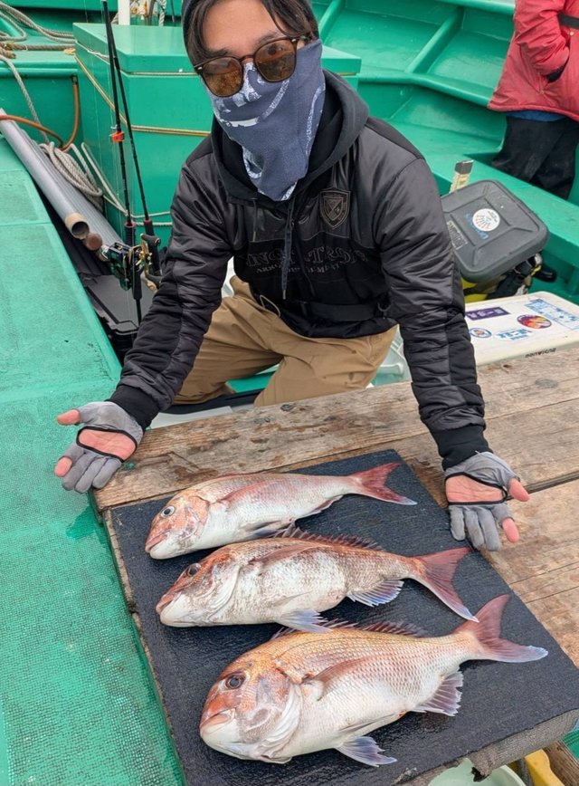 0.30~3.30kg 1~12匹 午前マダイ。 朝から喰い始め、3.3キロ•2.0キロ•1.7キロ•1.6キロ•1.6キロの大鯛•型物を筆頭に喰いました。他にも大鯛2発•型物2発チャンスありましたが…痛恨のラインブレイクとバラシで残念でした。 型物連発でした!! アタリ多く入れ喰いの時間もあり好調でした。 お乗り頂いたお客様お疲れ様でした。