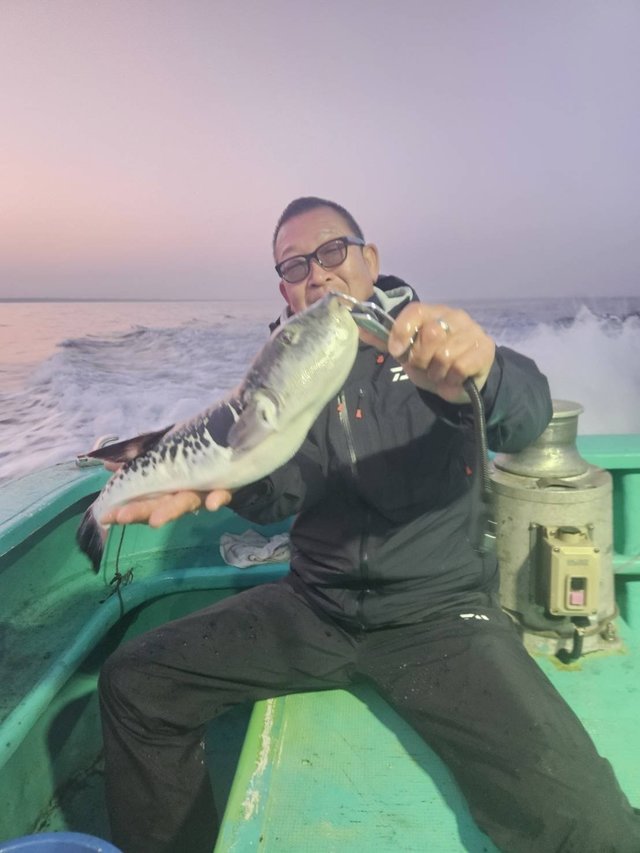 0.50~5.16kg 0~7匹 ショウサイフグ 25~40cm 8~15匹 ◆ショウサイフグ船 ジャンボフグ主体 サイズ28~40cm8~15匹 ◆午前テンヤマダイ船 3.09キロ、3.44キロ、5.16キロ 1キロ代7枚 2キロ代4枚 サイズ0.5~5.16kg0~7枚 竿頭、石橋さん 外道、ハナダイ、ショウサイフグ、ホウボウ 今日のフグ船は平均型が良く数が上がりました。 マダイ午前船は当たりポツポツでしたが、中鯛、大鯛上がり良かったです。 テンヤマダイ船乗船のお客様は必ずフィッシュグリップ、ペンチを持って来て下さい。魚の針を外す時に魚が暴れて大変危険です!お願いします。 ご乗船の皆さん、大変お疲れ様でした。ありがとうございました。またのお越しをお待ちしております。 明日はヤリイカ船、テンヤマダイ午前午後の出船です。宜しくお願い致します。