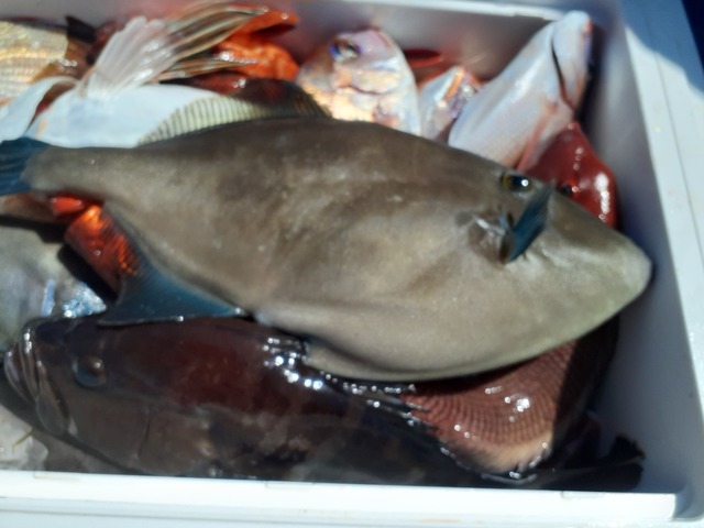 0.30~5.50kg 1~12匹 ハナダイ 25~35cm 0~10匹 トラフグ 2.50~3.10kg 0~2匹 内訳)5.5kg・4.4kg・1.8kg・1.2kg 今日も朝から潮流れ程よく反応もありアタリ多く好調!大鯛、中鯛も上がって楽しめました! 誘いの合う人は数も伸ばし、船内平均して掛かりましたね!ゲストには花鯛・カサゴ・メバル・トラフグなどなど!! 上がった他にもバレてしまったのもあったので今後も期待できそうです!!