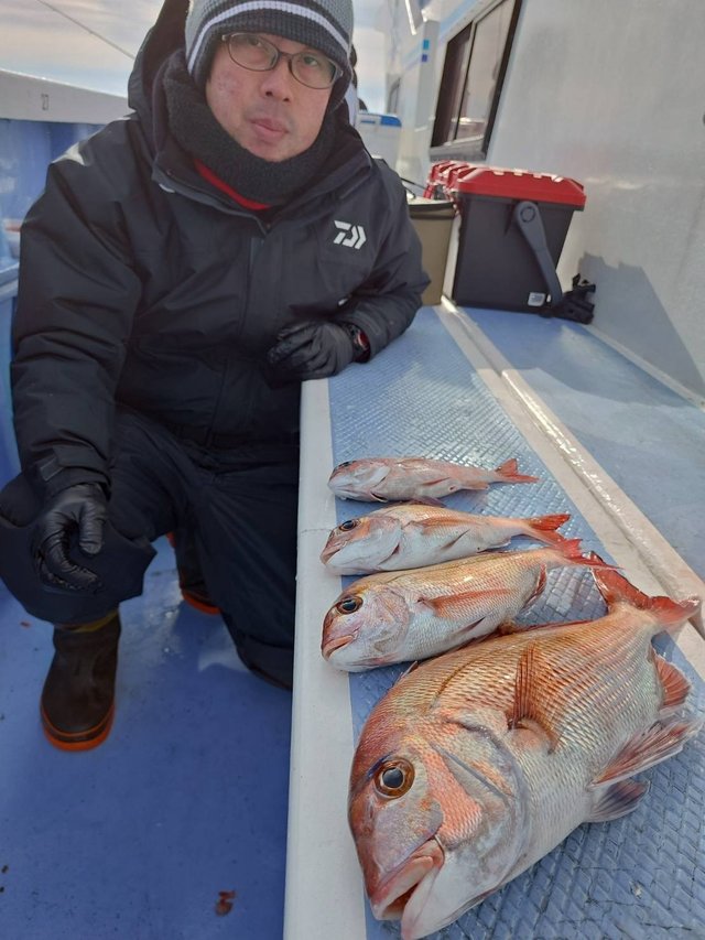 一つテンヤマダイで出船しました。水温15.7℃ 本日は出初めになりました。2025年もことぶき丸を宜しくお願い致します。マダイ最大で0.8kgその他0.6kg...トップ3尾でした。マダイ0.3~0.8kg0~3尾。ゲストでマゾイ、マハタ、カサゴ、メバル、ハナダイ、ショウサイフグでした。本日、乗船の皆様ありがとうございました。 【お知らせ】 明日1月4日(土)は一つテンヤマダイ、タイラバ、ライトジグで出船致します。お早いご予約お待ちしております。 年始は、1月3日から営業しています。お早いご予約お待ちしております。 ※一つテンヤマダイ集合5時に変更しました! ※誠に勝手ながら満船時の当日キャンセルは乗船料の100%頂きます。ご了承下さい! 一つテンヤマダイ 11,000円(エサ、氷、昼食付) 集合5時になります。 アマダイ、アマラバ 11,000円(エサ、氷、昼食付) 集合5時になります。 エギダコ 12,000円(氷、昼食付) 集合4時になります。 ご予約 電話090-1842-0165 お気軽にお電話下さいね!!