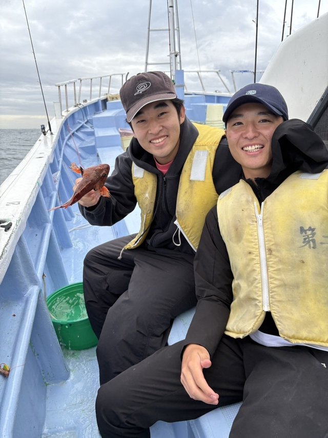 0.50~2.20kg 0~3匹 ハナダイ 0.30~0.50kg 0~2匹 ショウサイフグ 15~25cm 0~4匹 イナダ 45cm 合計1匹 ホウボウ 25~30cm 0~2匹 カサゴ 15~20cm 0~2匹 トラフグ 1.00kg 合計1匹 午前テンヤ真鯛船 北のポイント 水深、30m前後を狙い 今日は、当たり多く 外道多彩に掛かり お土産十分でしたよ~(^o^)/