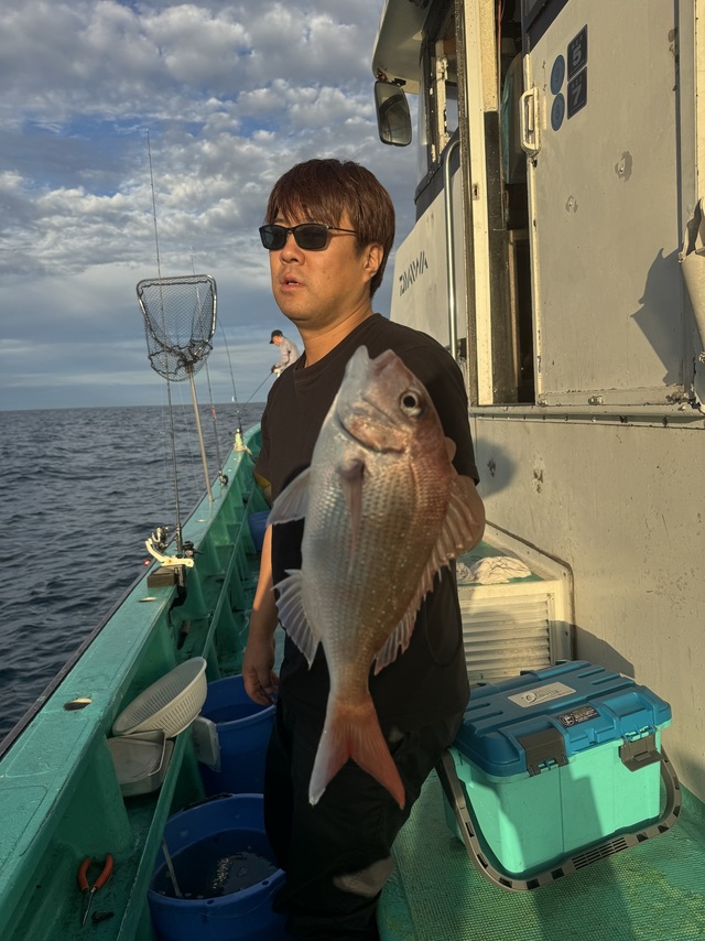 0.30~1.70kg 0~4匹 本日午前マダイ船、 朝から小型だったものの、 型は出ていましたね。 現在鹿島沖で、 漁はマダイが大漁ですが… 平間のポイントで反応出てましたが、 さっぱりでした。 根中のポイントに戻ると、 0.3,〜1.7キロ級までがポツポツ顔見せました。 本日予報より風強かったので、 またナギ込めば期待できそうです。 段々と朝夕は涼しくなってきて 水温も下がり加減でこれから シーズンイン!? 本日ご乗船の皆様、 いつもありがとうございます、 またのご釣行、こころより お待ちしております!