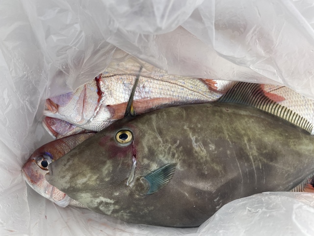 0.30~4.20kg 0~7匹 内訳)4.2kg・1.2kg・1.1kg・1.1kg・1.0kg 前半は風が多少あって流れ早くもパターン合う人はマダイのアタリもありサイズもゲストにはカサゴ、ウマヅラハギ、ハナダイなどを迎えました! 後半からは風も緩み釣りやすくなってきて終盤に最大4.2kg浮上!!上がりませんでしたが他にも大鯛らしきヒットあり!明日も出船予定!空席多数ご予約受付中! ※船長コメント 「サトル君でも釣れるようになりました♪パターン見つかれば数もサイズも取れると思います!今後も期待」