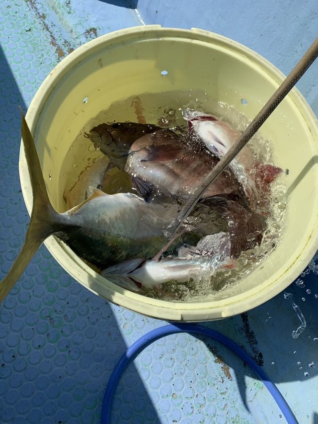 0.80kg 合計1匹 ハナダイ 0.50~0.60kg 0~1匹 カサゴ 15~23cm 0~3匹 ウマヅラハギ 30cm 合計1匹 ムシガレイ 30~35cm 0~1匹 ハタ 30cm 合計1匹 ホウボウ 28cm 合計1匹 午前テンヤ真鯛船 北のポイントを ポイントを転々転々転々としながら 狙い、真鯛は1枚でしたが、 外道が多彩に掛かり お土産十分でしたよ~(^o^)/ 小学生のお子様も 楽しんでましたよ~! 暑い中、お疲れさまでした。