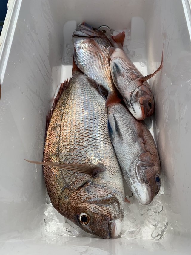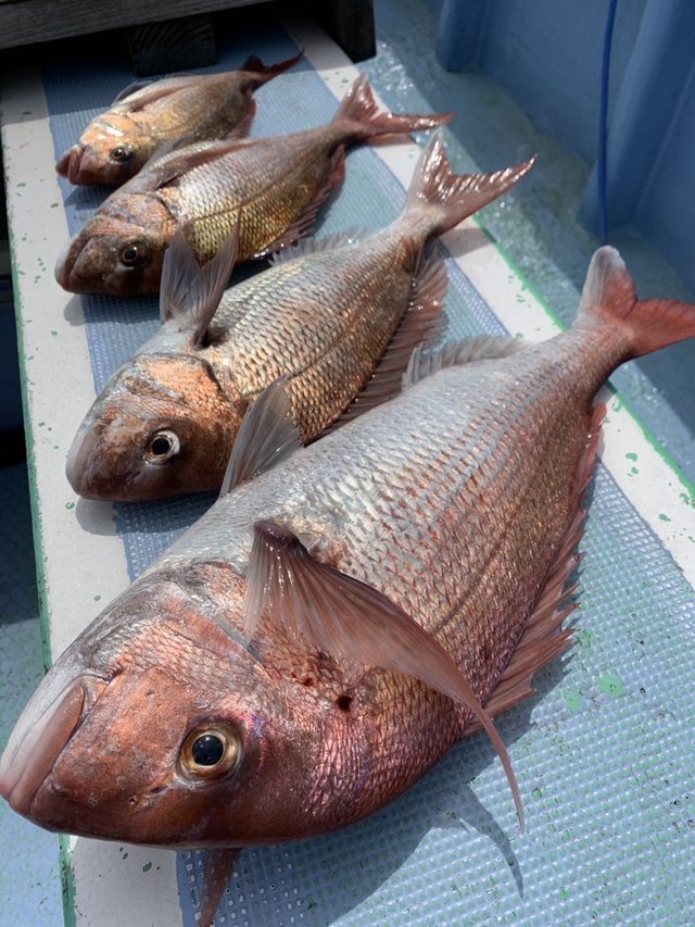 0.30~2.80kg 0~5匹 2、8キロの真鯛が最大で竿頭真鯛5枚!!明日も明後日もまだ空きあります!ご予約お早めに!平日も毎日テンヤ真鯛釣りに出船します!予約受付中!探見丸smartも使用可能です。スマートフォンをお持ちの方はアプリをダウンロードして、是非お試しください!大さん弘漁丸オリジナルステッカーを乗船記念に限定配布します!初心者も大歓迎!皆様のお越しを心よりお待ちしております!