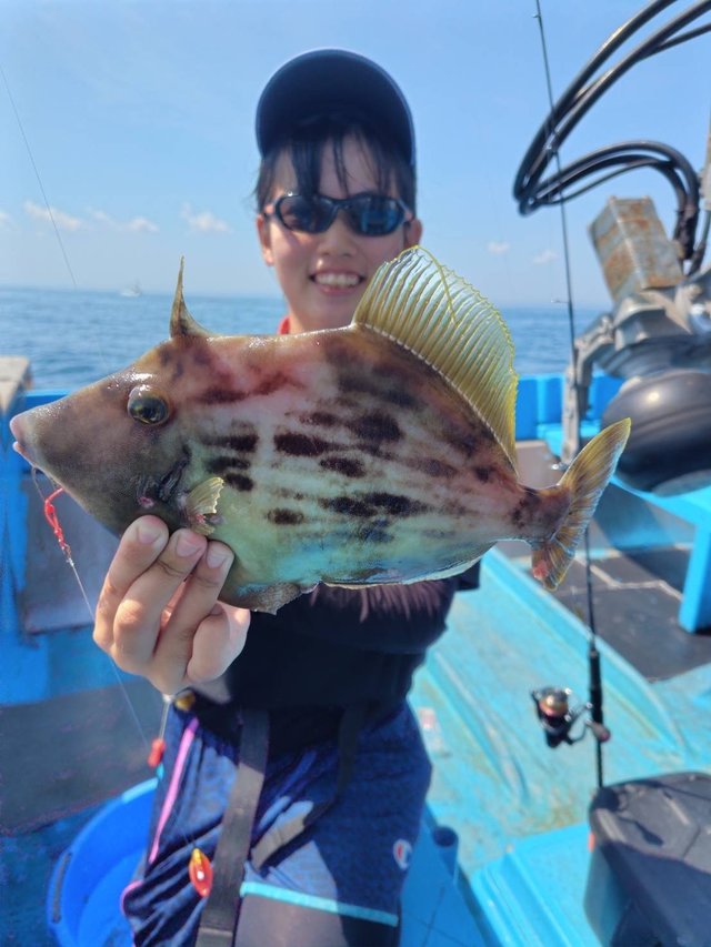 0.40~5.40kg 0~3匹 ハナダイ 0.30~0.60kg 0~2匹 ショウサイフグ 30cm 合計1匹 ウマヅラハギ 30~35cm 0~2匹 カワハギ 20~25cm 0~2匹 メバル 25~28cm 0~1匹 カサゴ 15~20cm 0~2匹 午前テンヤ真鯛船 北のポイントを狙い 朝イチ、出ましたよ~! 5、4キロ! 三鷹市から、お越しの「岩崎様」 タイラバで、おめでとうございます! 他にも、、 3、1キロ、1、3キロ。 3枚ゲットぉぉ~! 半額券、15枚 おめでとうございま~す(^o^)/ 外道も、多彩にあがり お土産になりよかったです! 暑い中、お疲れさまでした!