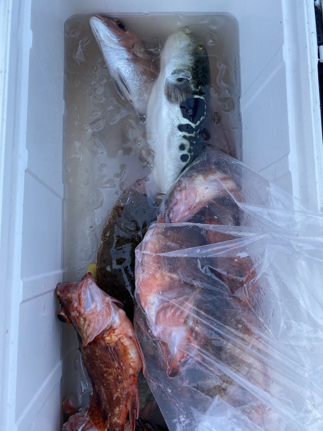 0.30~2.72kg 0~6匹 マハタ 28~35cm 0~2匹 カサゴ 25~40cm 0~2匹 クロソイ 28~35cm 0~1匹 ヒラメ 3.00~3.50kg 0~1匹 午前一つテンヤマダイで出船しました。水温25.5℃ マダイ最大で2.72kgその他、0.8kg0.6kg、0.5kg...トップ6尾でした。マダイ0.3~2.72kg0~6尾。ゲストでマハタ、カサゴ、ヒラメ3kg、3.5kg、クロソイ、ショウサイフグでした。本日、乗船の皆様ありがとうございました。 【お知らせ】 明日8月23日(土)は午前、午後一つテンヤマダイで出船致します。お早いご予約お待ちしております。 ※一つテンヤマダイ集合4時30分に変更しました! ※誠に勝手ながら満船時の当日キャンセルは乗船料の100%頂きます。ご了承下さい! 一つテンヤマダイ 12,000円(エサ、氷付き) 集合4時30分になります。 アマダイ、アマラバ 12,000円(エサ、氷付き) 集合4時30分になります。 エギダコ 13,000円(氷付き) 集合4時になります。 ご予約 電話090-1842-0165 お気軽にお電話下さいね!!