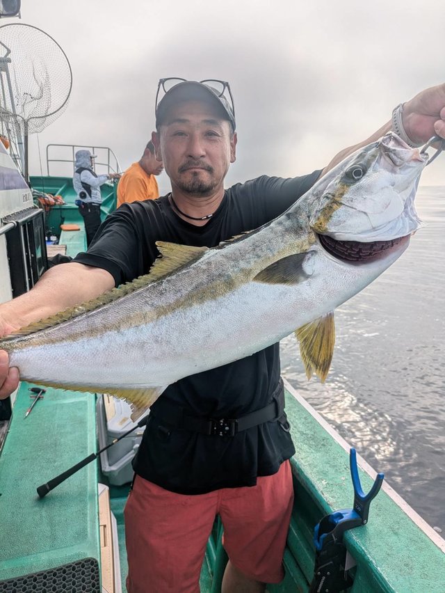 0.50~3.86kg 0~3匹 ◆午前テンヤ船 1キロ未満3枚、1キロ代1枚、3.05キロ、3.24キロ、3.43キロ、3.65キロ、3.86キロ サイズ0.5~3.86kg0~3枚 竿頭高橋さん 午前は大鯛狙いでしたが当たり少なくも狙い通りに3キロ台5枚上がりました。今日は根回りをほぼやらず大鯛狙いにしましたが状況次第では根回りもやります。 ご乗船の皆さん、暑い中大変お疲れ様でした。ありがとうございました。またのお越しをお待ちしております。