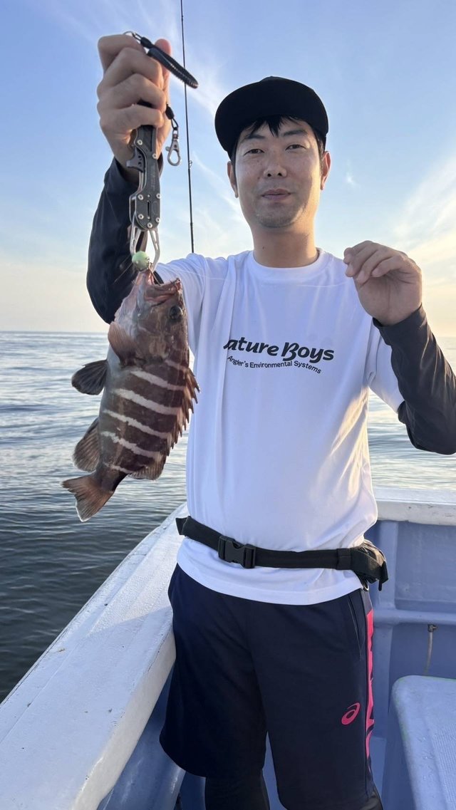 ★テンヤマダイ船 大鯛3.0kgヒット!! 良型混じり良い人2〜3匹でした!! 他に、ヒラメ、ヒラマサ、ハナダイ、カサゴ、マハタ、ショウサイフグなど! ★ムラソイ船 前半はムラソイ活性高く良型多数ヒットしましたが、台風の影響で次第にウネリ高くなり後半は苦戦しました。 他に、カサゴ、黒メバルなど多数混じりました!