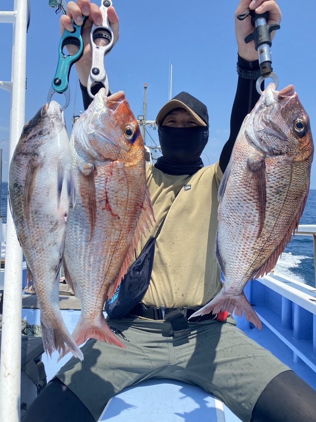 0.80~4.00kg 0~10匹 ハナダイ 25~35cm 0~4匹 内訳)4.0kg・3.6kg・3.5kg・3.0kg・2.9kg・2.8kg・2.5kg・2.3kg・2.2kg・2.2kg・2.0kg・2.0kg・2.0kg・2.0kg・1.9kg・1.9kg・1.9kg・1.8kg・1.7kg・1.6kg・1.6kg・1.6kg・1.5kg・1.5kg・1.5kg・1.5kg・1.4kg・1.4kg・1.3kg・1.2kg 今日は潮流れ程よく一日通してアタリもポツポツとあり好調!!大鯛続々浮上!上がれば良型で誘いの合う人は枚数もゲット!!大鯛のバラシ、すっぽ抜け何回かありました! ハナダイ、ホウボウなどのゲストも上がりお土産になりました♪大鯛チャレンジもまだ枠残ってます!連日好調!今後も期待!