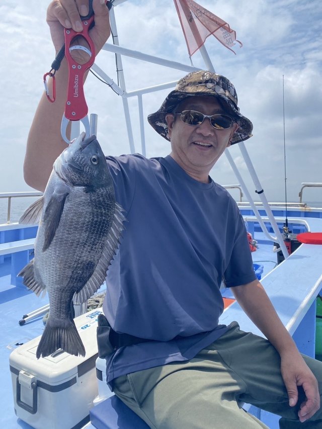 1.01~6.24kg 0~4匹 ショウサイフグ 25~40cm 2~7匹 ◆午前テンヤ船 1キロ代7枚、2キロ代5枚、3.01キロ、6.24キロ サイズ1.01~6.24kg0~4枚 竿頭、橋本さん 外道ハナダイ、トラフグ、ショウサイフグ、ホウボウ ◆ショウサイフグ船 サイズ25~40cm2~7枚 午前は朝開始~大鯛、中鯛ヒット、大鯛のフックアウトも2発有りました。その後は当たり全く無くなり終了15分前にポツポツ当たり出し、残り1分に本日最大ヒット、最後まで諦めないで良かったです。海の中は何が起きるかわかりませんね。 フグ船は潮の流れや水色が悪く数が伸びませんでした。 ご乗船の皆さん、暑い中大変お疲れ様でした。ありがとうございました。またのお越しをお待ちしております。