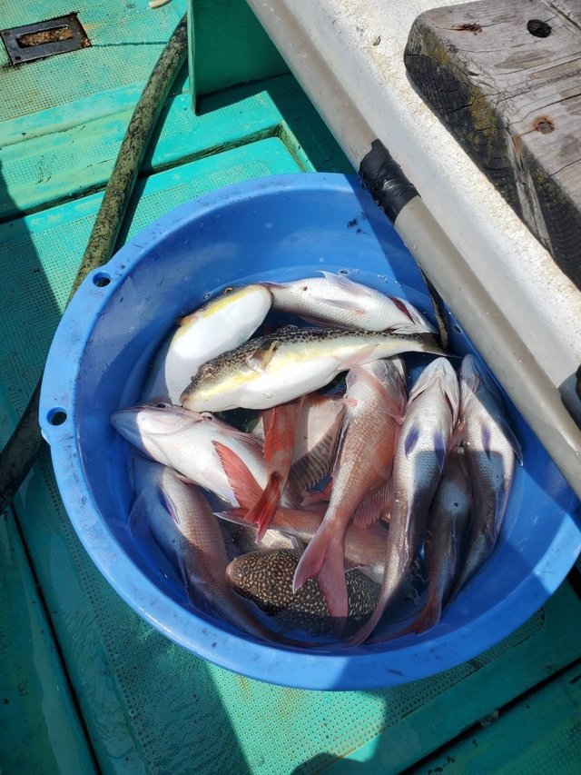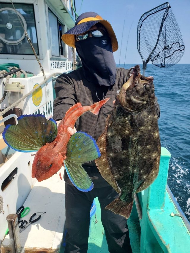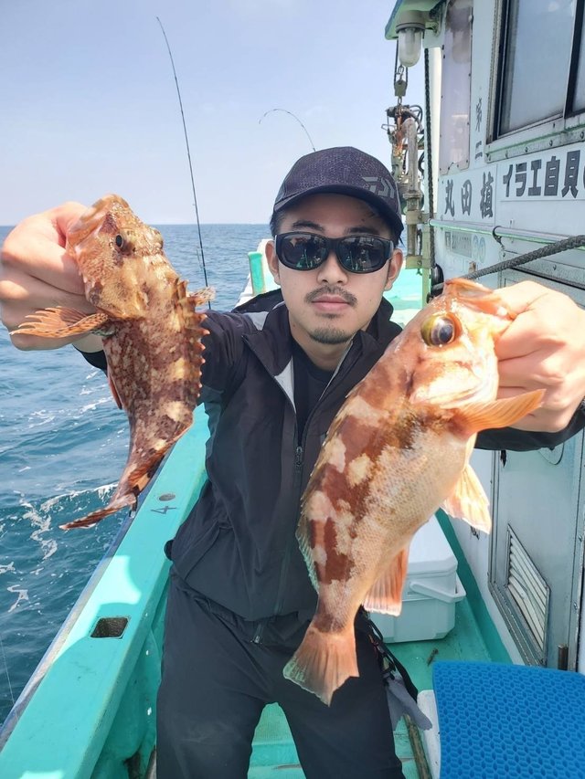 0.30~1.00kg 1~5匹 マハタ 28~40cm 0~2匹 マゾイ 28~38cm 0~1匹 メバル 28~34cm 0~2匹 ヒラメ 1.00kg 合計1匹 一つテンヤマダイで出船しました。水温16.8℃ マダイ最大で1kgその他0.8kg、0.6kg...トップ5尾でした。マダイ0.3~0.8kg1~5尾。ゲストでマゾイ、マハタ、メバル、ヒラメ、ホウボウ、イナダ、ムシガレイ、ショウサイフグでした。本日、乗船の皆様ありがとうございました。 【お知らせ】 明日6月8日(日)はエギダコで出船致します。お早いご予約お待ちしております! ※一つテンヤマダイ集合4時30分に変更しました! ※誠に勝手ながら満船時の当日キャンセルは乗船料の100%頂きます。ご了承下さい! 一つテンヤマダイ 12,000円(エサ、氷) 集合4時30分になります。 アマダイ、アマラバ 12,000円(エサ、氷) 集合4時30分になります。 エギダコ 13,000円(氷付) 集合4時になります。 ご予約 電話090-1842-0165 お気軽にお電話下さいね!!