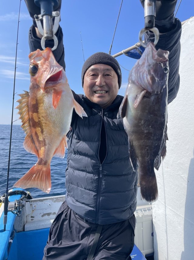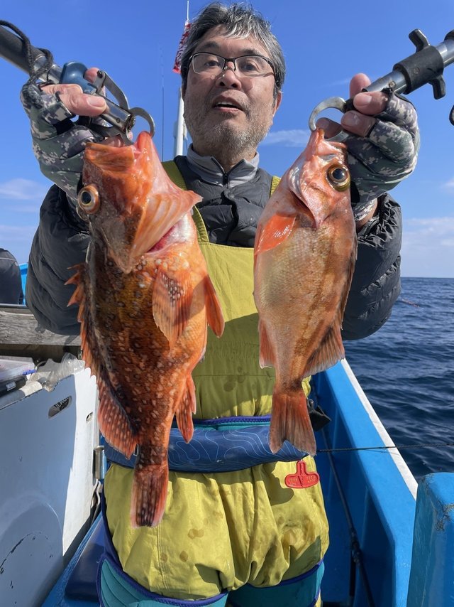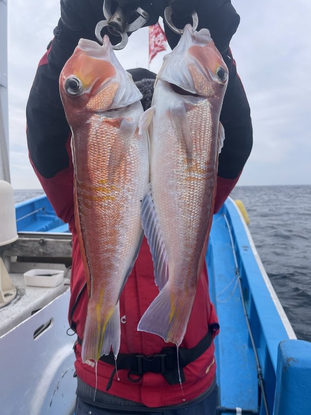 (ブリ)2.00~2.50kg 0~1匹 アマダイ 40~46cm 0~3匹 マダイ 0.30~3.60kg 0~2匹 ウッカリカサゴ 30~51cm 0~2匹 メバル 28~32cm 0~5匹 ヒラメ 2.50kg 合計1匹 ホウボウ 30~50cm 0~4匹 アマダイ、アマラバで出船しました。 水温15.7℃ アマダイ最大で46cmトップ3尾でした。アマダイ40~46cm0~3尾。ゲストでマダイ、メバル、ヒラメ、ホウボウ、カンコ、オニカサゴ、ワラサ、ムシガレイでした。本日、乗船の皆様ありがとうございました。 【お知らせ】 2月13日(金)は一つテンヤマダイ、タイラバで出船致しまし。お早いご予約お待ちしております。 テンヤマダイ船集合5時になります! ※誠に勝手ながら満船時の当日キャンセルは乗船料の100%頂きます。ご了承下さい! 一つテンヤマダイ 12,000円(エサ、氷付き) 集合5時になります。 アマダイ、アマラバ 12,000円(エサ、氷付き) 集合4時30分になります。 エギダコ 13,000円(氷付き) 集合4時になります。 ご予約 電話090-1842-0165 お気軽にお電話下さいね!!