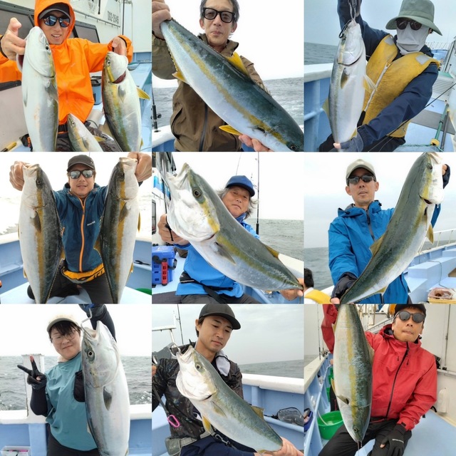 2.30~3.10kg 0~2匹 ワラサ 2.30~4.60kg 0~7匹 ルアー ☆☆青物ルアー船☆☆ ヒラマサ0~2本2.3~3.1キロ ワラサ0~7本3.2~4.6キロ 他、ホウボウ 朝からポチポチとヒットはしましたが、海況悪くバラシも多く残念! 途中でダウンされる方もちらほらと! 広範囲に魚はまだいますのでまだ楽しめると思います。 最近リールの小さい方が多く見受けられますが魚が掛かった時にオマツリが頻発に発生しますので大き目のリールをお使い下さい。ドラグの調整も忘れずにお願いします。
