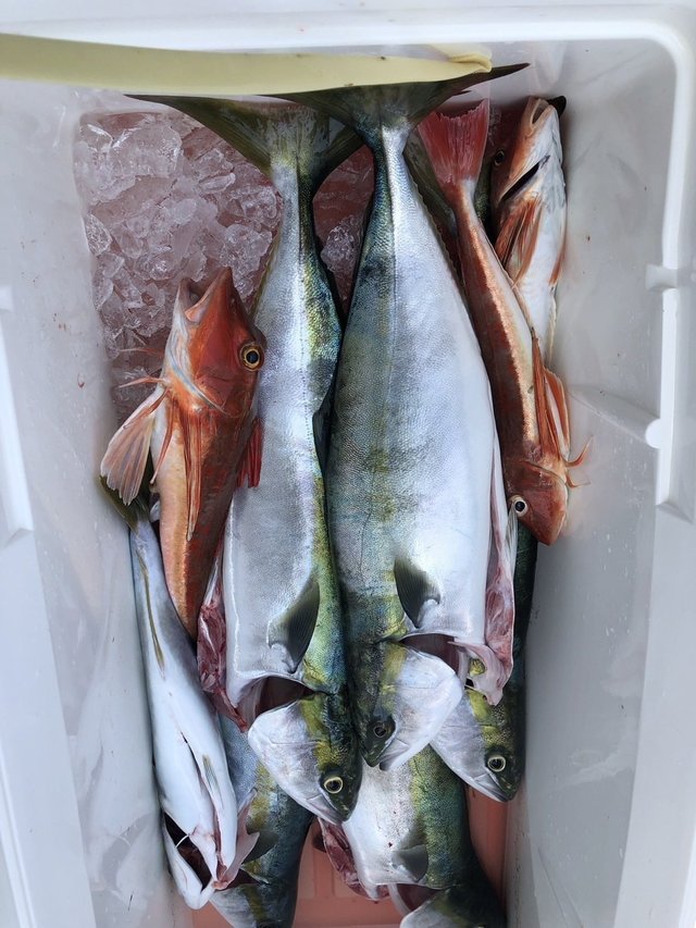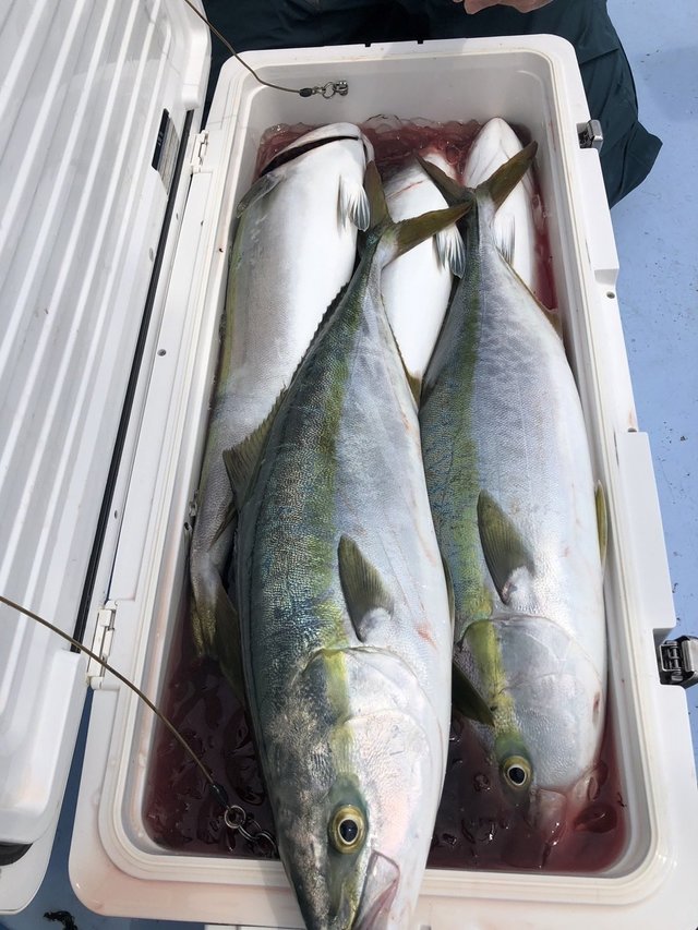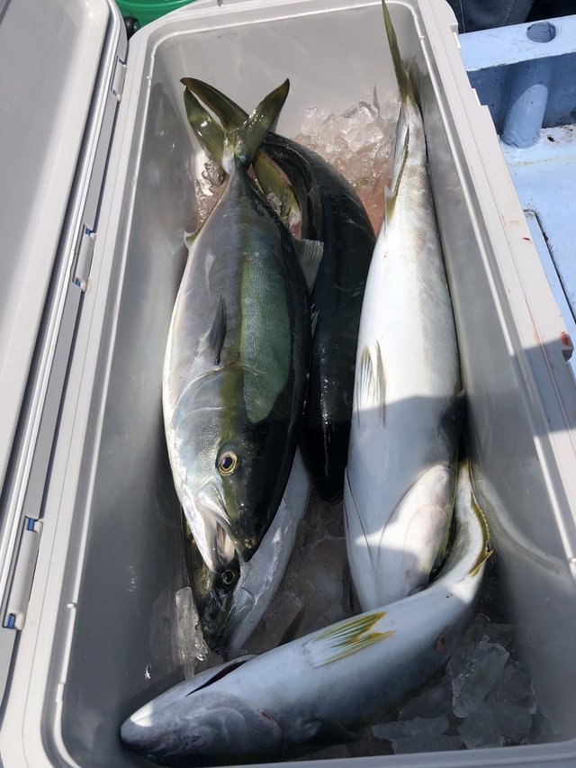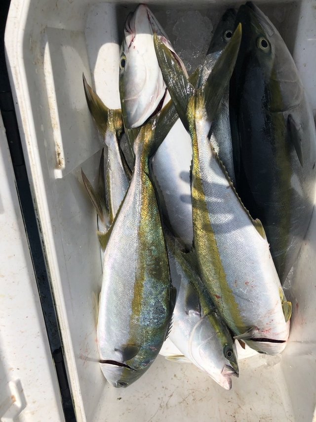 1.80~3.00kg 0~2匹 ワラサ 2.70~4.30kg 3~16匹 サワラ 4.00kg 合計1匹 ヒラマサ・・・船中10本 大型ヒラマサのラインブレイクあり! 朝から反応はあちこちに多数あり!ワラサ主体に好調!!ヒラマサも混じり大型のラインブレイクもありと楽しめました!! ワラサも休憩挟みながらなので体力次第ではまだまだ伸びたかも! ※最近5000番(現在の表記)前後の小さいリールの方が増えてます。お客様が少ない時は大丈夫ですが、多い時はオマツリの原因になってしまいますので番手の大きいリールも持ってきてください。