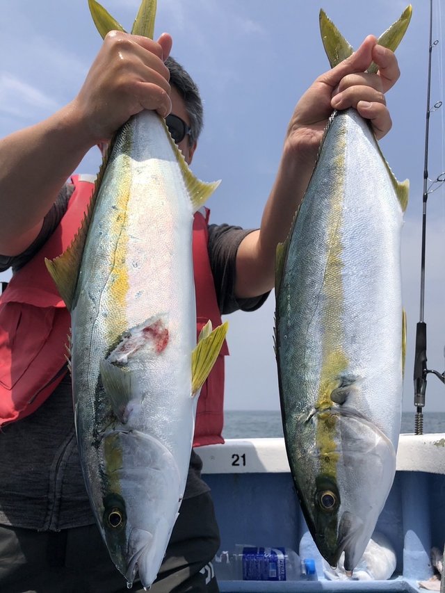 2.30~3.00kg 0~1匹 ワラサ 3.20~7.00kg 0~5匹 ☆☆青物ルアー船☆☆ ヒラマサ0~1本2.3~3キロ ワラサ0~5本3.2~7キロ 他、ホウボウ、アジ、サバ ここ最近は良い反応でも数名しかヒットせずなんともまあ、、、 パターンを掴めば連続ヒットもするのですが、、、 本日は、あと少しでブリと言うサイズのワラサもいました。 最近リールの小さい方が多く見受けられますが魚が掛かった時にオマツリが頻発に発生しますので大き目のリールをお使い下さい。ドラグの調整も忘れずにお願いします。