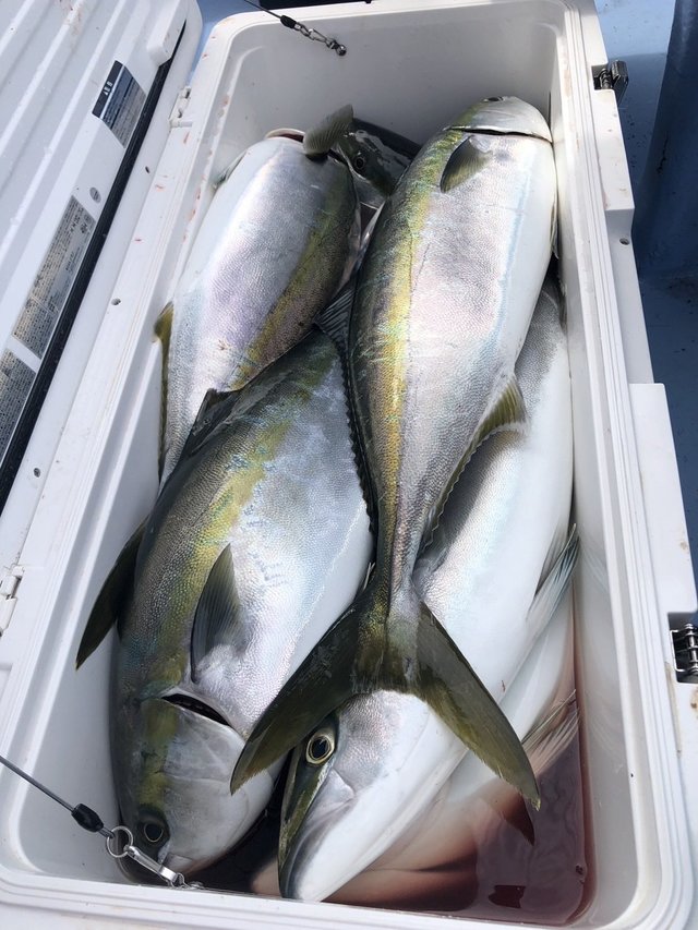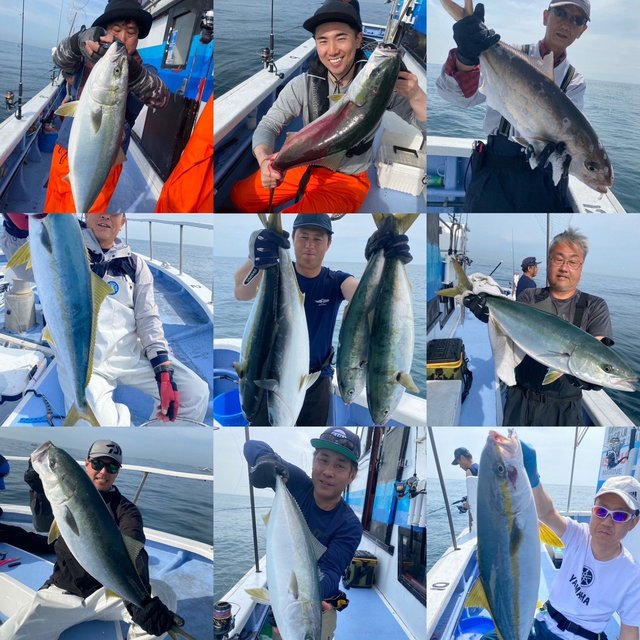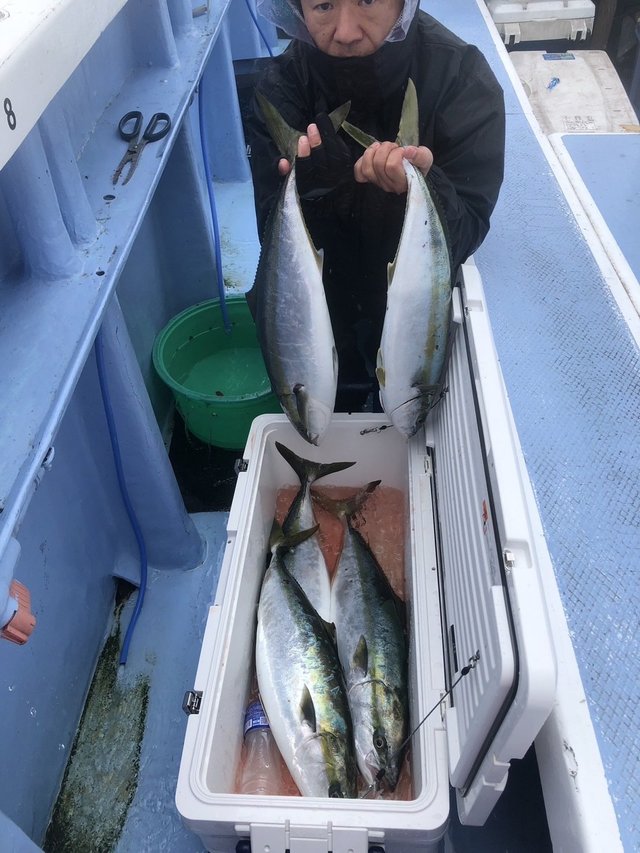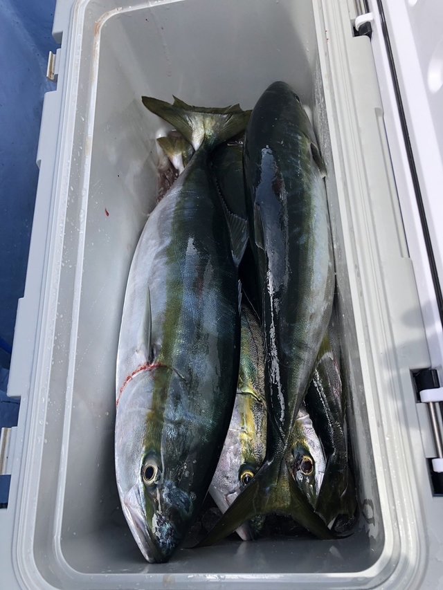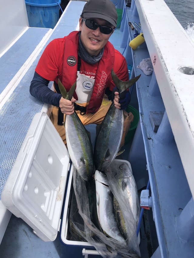 2.00~3.00kg 0~2匹 ワラサ 2.70~4.00kg 0~9匹 朝から風かなり強く海悪い中本日のお客様お疲れ様でしたー(^^) 反応はあちこちあるけど、中々船下に入ってこず数がイマイチ伸びませんでしたが反応入ってくると片舷全員ヒットなどもあり9割以上の方は釣れました! 魚影自体は濃いですね!今後も期待できそうです!!