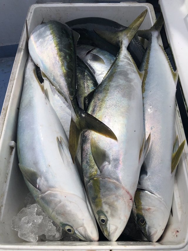 2.00~2.50kg 0~2匹 ワラサ 2.70~4.50kg 7~18匹 今日は南のポイントからスタート!! 朝から反応もありポツリポツリと掛かり始め日が登ってからは巻きの合う方は入れ食い(^^) 順調に数も伸びてヒラマサも回ってきて楽しめました!!魚影濃厚!今後も期待!! ※最近5000番(現在の表記)前後の小さいリールの方が増えてます。お客様が少ない時は大丈夫ですが、多い時はオマツリの原因になってしまいますので番手の大きいリールも持ってきてください。