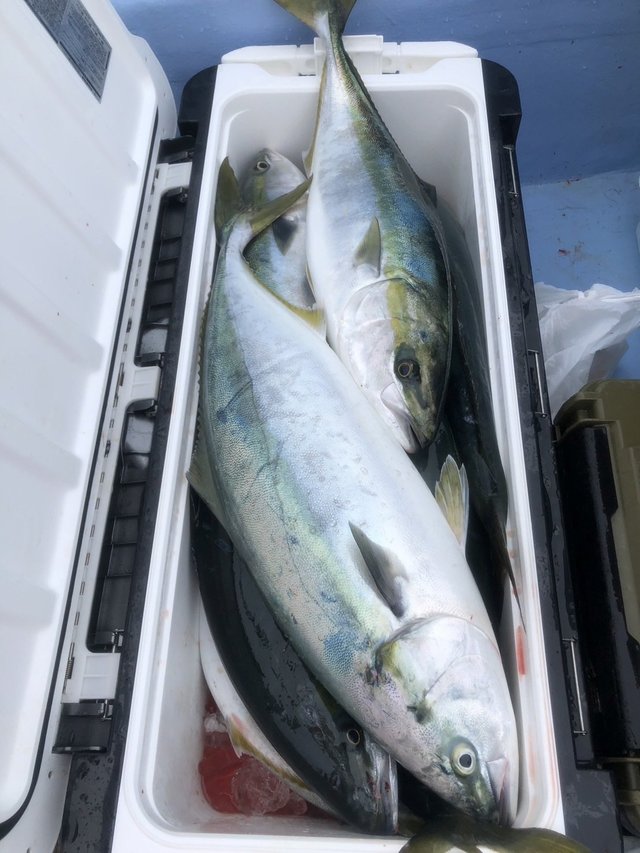 2.00~3.20kg 0~1匹 ワラサ 2.70~5.00kg 4~14匹 今日も南のポイントからスタート!! 反応もあり全体的に掛かって数も伸びていきヒラマサも回ってきて好調でした! 風が徐々に増してきて危険になってきたので9時半早上がりとさせていただきました。いつもより短い時間でこれだけ釣れたので今後も期待できそうです! ※最近5000番(現在の表記)前後の小さいリールの方が増えてます。お客様が少ない時は大丈夫ですが、多い時はオマツリの原因になってしまいますので番手の大きいリールも持ってきてください。