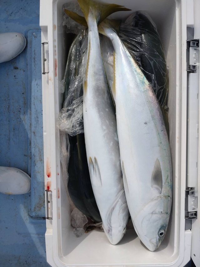 3.40kg 合計1匹 ワラサ 3.20~4.60kg 0~3匹 ルアー ☆☆青物ルアー船☆☆ ヒラマサ0~1本3.4キロ ワラサ0~3本3.2~4.6キロ 他、サバ、ヒラメ、ホウボウ、シイラ 朝イチ好調でしたが、徐々に失速!ポイントを変えてみましたがヒラマサの追加したのみでした。 魚は確実に居るのですがね! 今後に期待です。