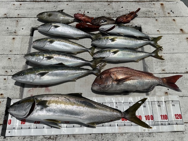 最大4.20kg ワラサ 3.00~4.50kg 0~3匹 イナダ 1.00~2.00kg 0~2匹 ショゴ 1.00~2.00kg 0~1匹 青物ルアー23号船