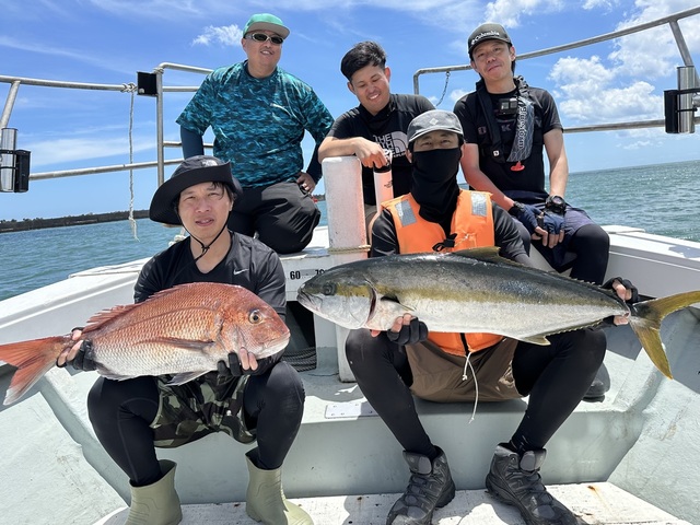 1.50kg 合計1匹 マダイ 0.30~0.90kg 0~4匹 カサゴ 25~32cm 0~3匹 マハタ 28~40cm 0~2匹 マゾイ 28~35cm 0~2匹 ヒラメ 2.00kg 合計1匹 午前一つテンヤマダイで出船しました。水温19.4℃ マダイ最大で0.9kgその他0.6kg、0.5...トップ4尾でした。マダイ0.3~0.9kg0~4尾。ゲストでマゾイ、マハタ、カサゴ、ヒラメ、ヒラマサ、イナダ、カンダイ、ショウサイフグでした。本日、乗船の皆様ありがとうございました。 【お知らせ】 明日7月20日(日)は大杉神社の例祭の為お休みします! ※一つテンヤマダイ集合4時30分に変更しました! ※一つテンヤマダイ集合4時30分に変更しました! ※誠に勝手ながら満船時の当日キャンセルは乗船料の100%頂きます。ご了承下さい! 一つテンヤマダイ 12,000円(エサ、氷付き) 集合4時30分になります。 アマダイ、アマラバ 12,000円(エサ、氷付き) 集合4時30分になります。 エギダコ 13,000円(氷付き) 集合4時になります。 ご予約 電話090-1842-0165 お気軽にお電話下さいね!!