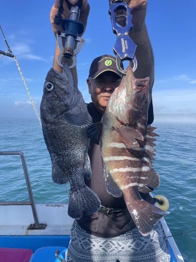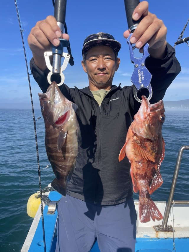 アジ 40~50匹 イシナギ カサゴ ハタ 根魚五目船、 水深40~50m辺りを攻めてきました。 イシナギ・カサゴ・ハタ・ヒラマサなど掛りました。ハリス切れも何度かありました。 座席は予約の際に伺います。 早い順になるのでご期待に添えない場合も御座います。 ご了承下さいね。 詳しくは電話確認でお願い致します。 貸し竿、投入機(数に限りが有ります) レンタルの方は予約の際に必ず申し出てください。 ご用意出来ない場合があります。 ※必ずライフジャケットの着用をお願いします。 無い方は必ず申し出て下さいね。 《日程》 7月23日(水)根魚五目船(空き有り) 24日(木)休み 25日(金)根魚五目船(空き多数) 26日(土)根魚五目船(空き多数) 27日(日)根魚五目船(空き多数) 29日(火)根魚五目船(空き多数) 8月1日(金)仕立て船