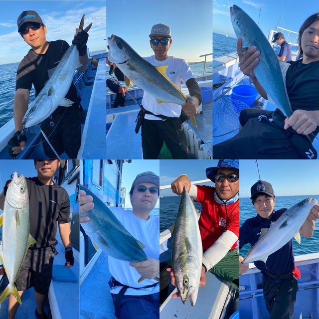 1.40~2.00kg 0~1匹 ワラサ 5.50kg 合計1匹 ショゴ 1.00kg 合計1匹 ヒラメ 0.40~1.50kg 0~2匹 サバ 35~45cm 0~3匹 チカメキントキ 35cm 合計1匹 カサゴ 25~33cm 0~2匹 午前ジギング船の釣果 潮流れず風無しの朝から厳しい海でした 前半にワラサ釣れたが続かず終盤にヒラマサとショゴキャッチして終了でした キープ以外はリリース 最後まで頑張って頂き大変お疲れ様でした