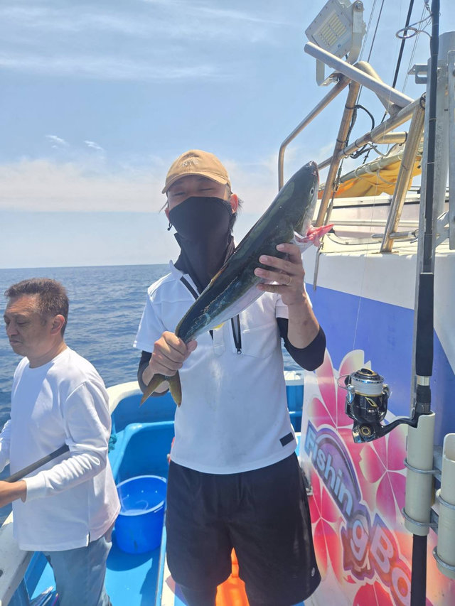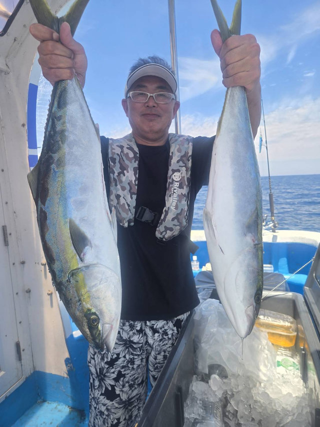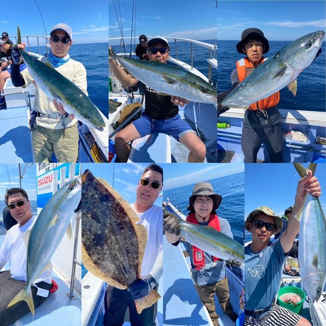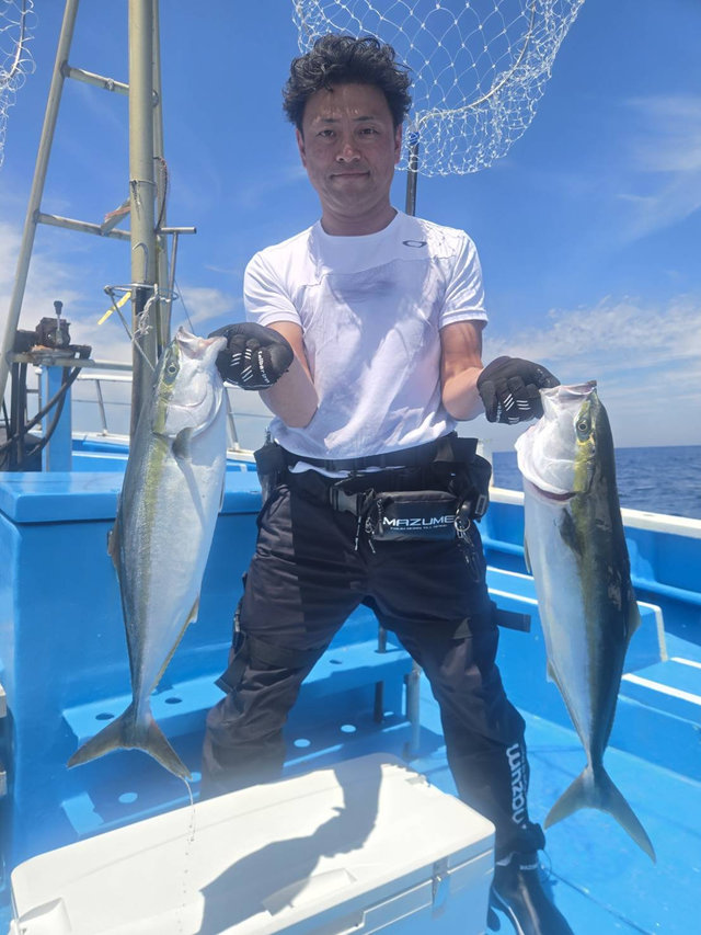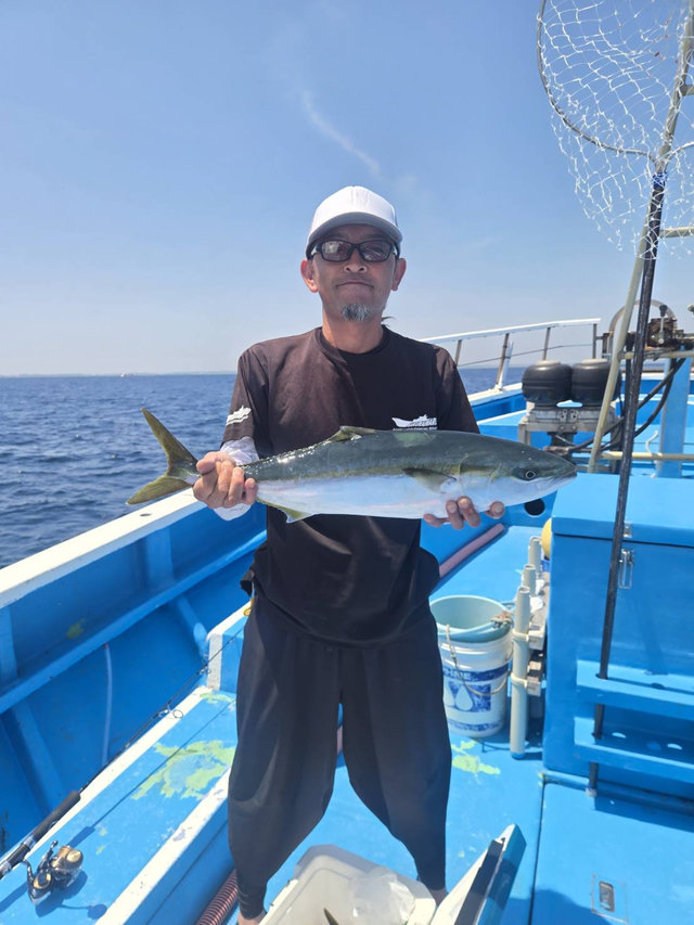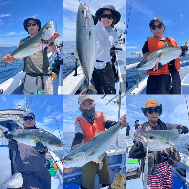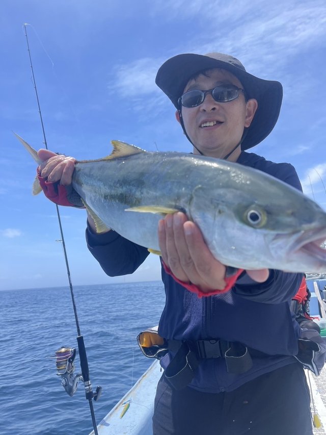 1.20~2.30kg 0~1匹 ワラサ 3.80~4.20kg 0~7匹 ☆☆午後青物ルアー船☆☆ ヒラマサ0~1本1.2~2.3キロ ワラサ0~7本3.8~4.2キロ カンパチ0~1尾2キロ 他、イナダ 本日も凪良く絶好の釣り日和でした。 肝心な魚は?と言うと、大きな反応には当たりませんでしたが、ほどほどにポツリポツリとヒットしました。 残念ながら1名オデコの方がでてしまいました。 ライトタックルの使用はお控え下さい。魚がヒットしても巻けない、オマツリを誘発しますのでメリットがありませんので宜しくお願いします。 海上も暑いので水分補給はマメにして下さい。 飲み物も少し大目に持ってきた方が良いかと! ルアー船はサンダル、魚サンは禁止にします。踵のあるサンダルは大丈夫です。