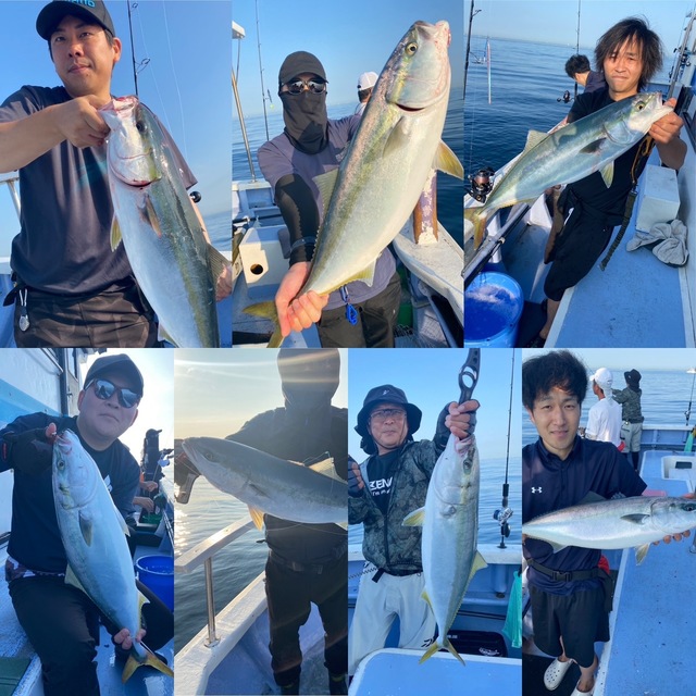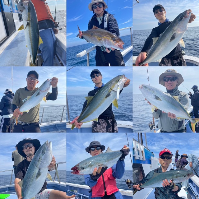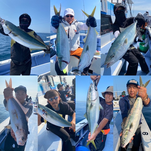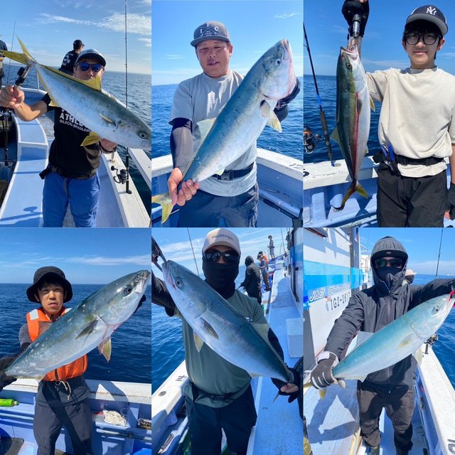 2.50~3.00kg 0~2匹 ワラサ 3.00~4.10kg 6~13匹 今日は休み明けからで心配しましたが朝から反応多数あり魚の活性も高くて好調! 船内平均も高くワラサ全員ゲット!!ヒラマサも上がって楽しめました♪ 魚影濃厚!今後も期待! ※リールは最低5000番以上を用意して下さい!最近かなり小さいリールが目立ちます、ご確認下さい。