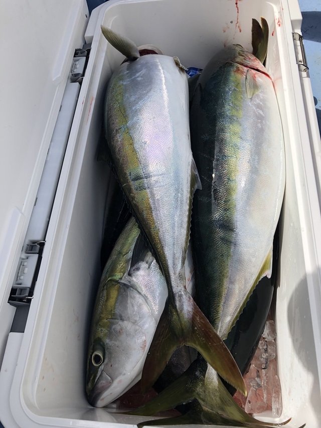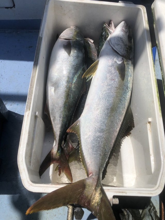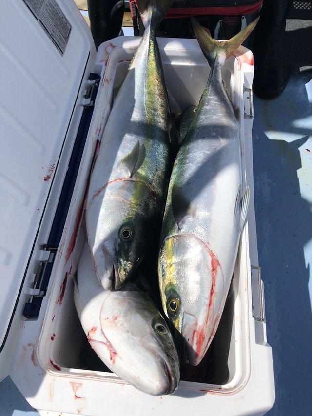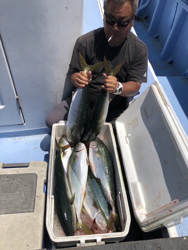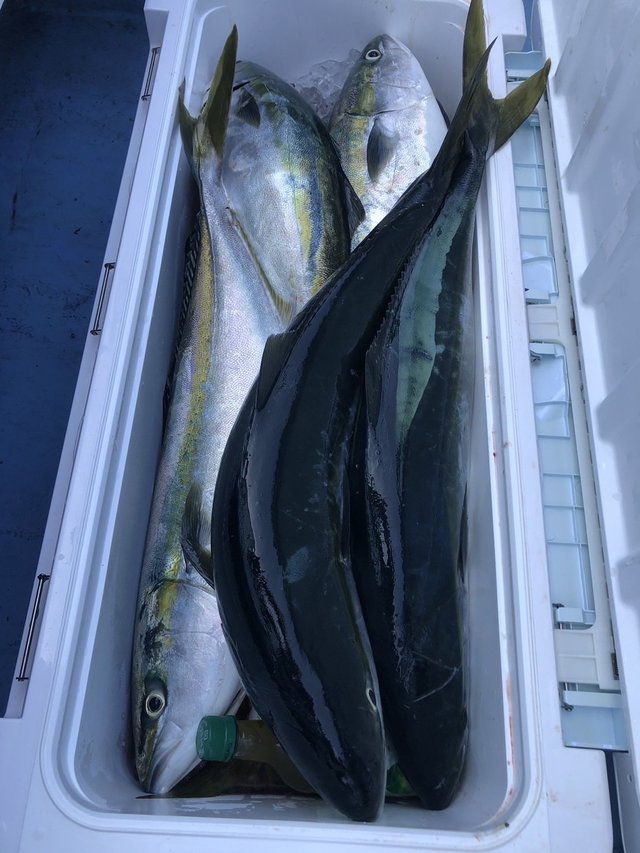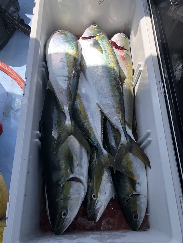 2.00~6.50kg 1~2匹 ワラサ 2.80~4.20kg 3~9匹 反応多数あり好調!活性も高く巻きの合う人は連続ヒットも!良型ヒラマサも上がり全員ゲット!! お客様も休憩挟みつつこの釣果なので反応自体はまだまだ釣れそうな感じでした!! 魚影濃厚!!今後も期待!!