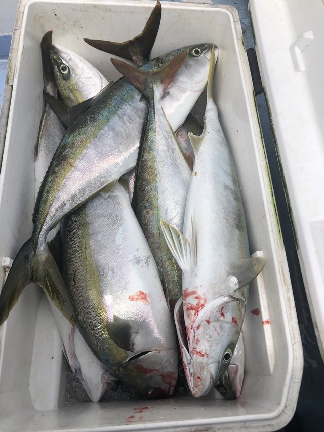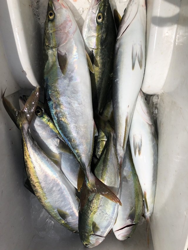 2.00~3.50kg 0~2匹 ワラサ 2.70~4.00kg 4~13匹 朝から反応多数あり動きが早く忙しかったですが、どうにか釣れました! 船長の合図があって、すぐジグを落とせたり、飽きずに竿を振ってられる(船下に反応無くても、船の周りには反応多数あり)と数ももっと伸びたでしょう!