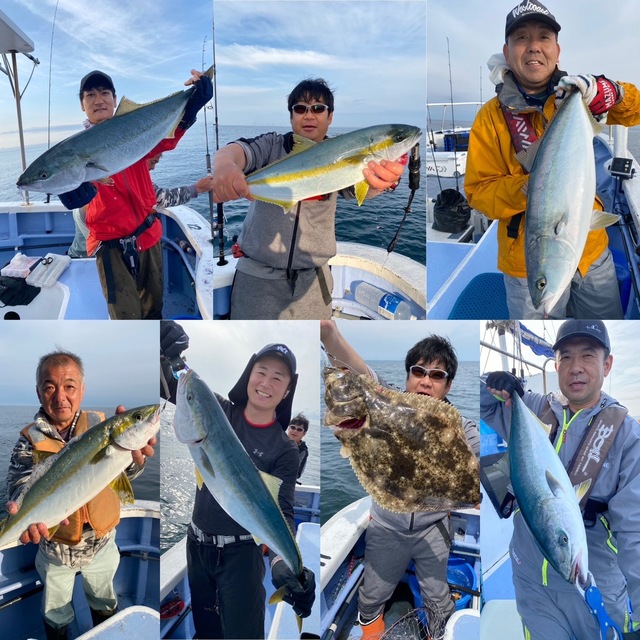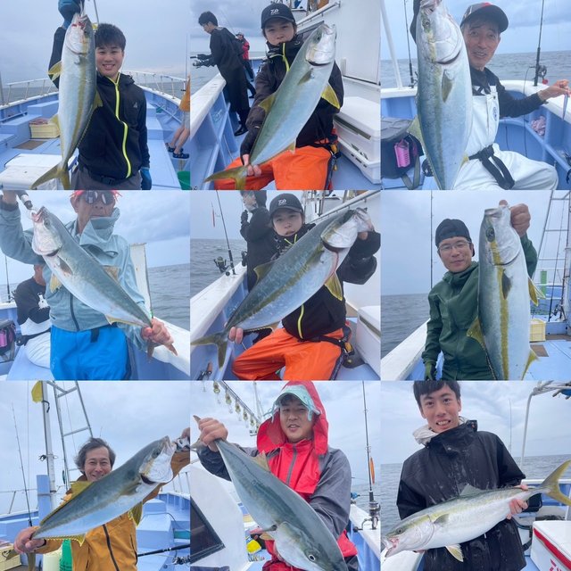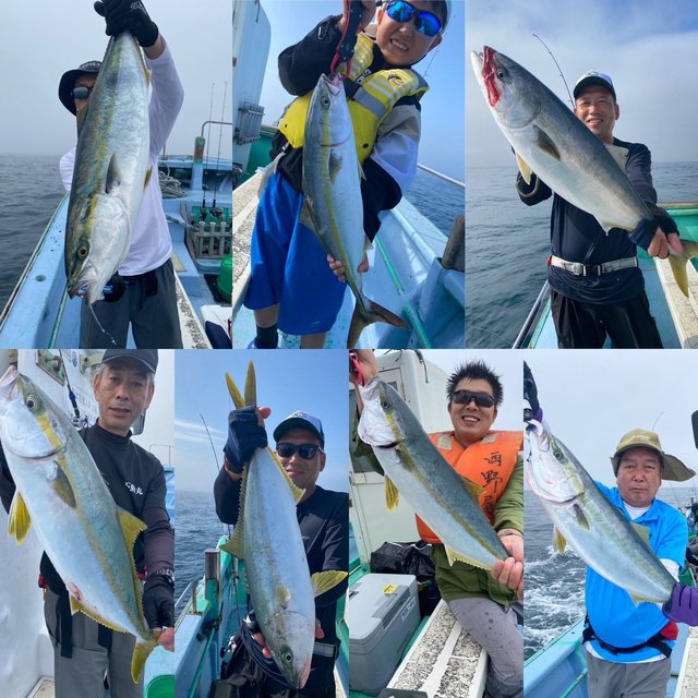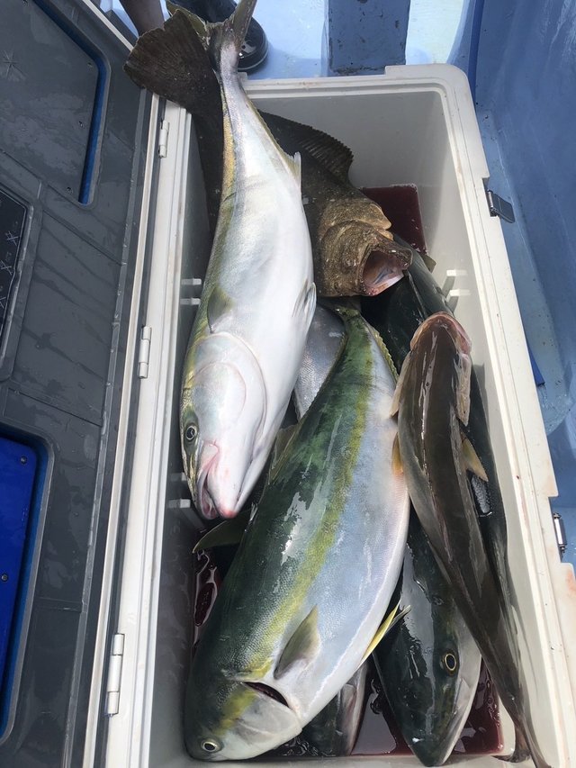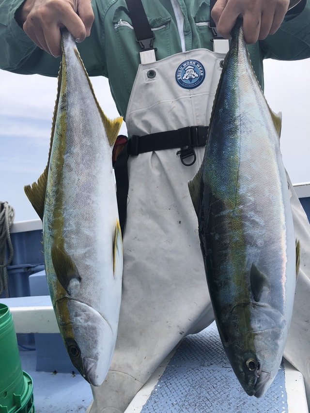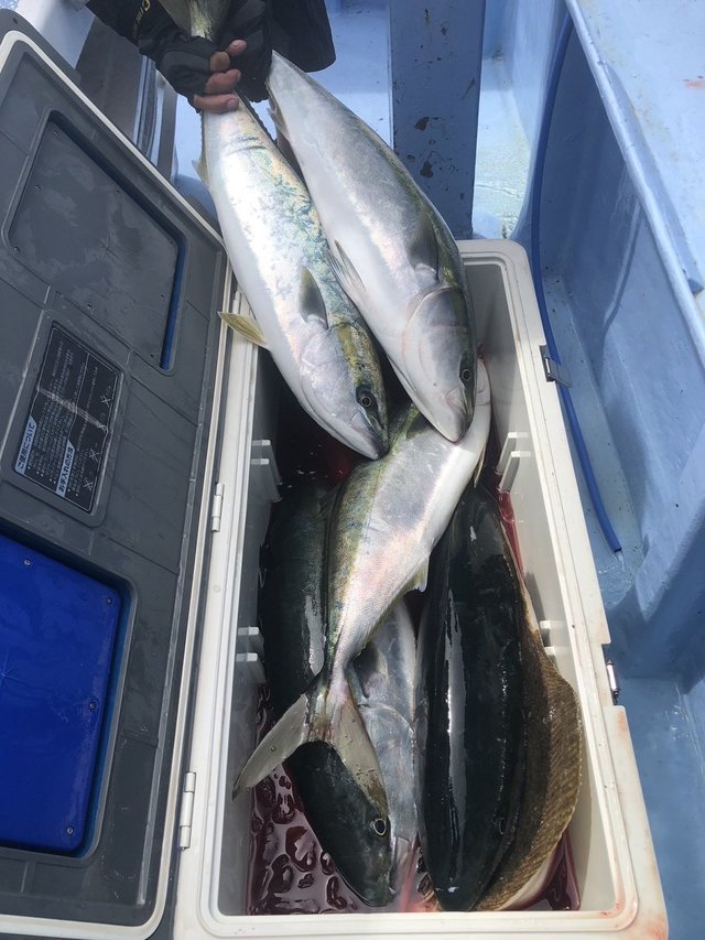 1.80~2.30kg 0~2匹 ワラサ 4.10~5.60kg 0~2匹 ルアー ☆☆青物ルアー船☆☆ ヒラマサ0~2本1.8~2.3キロ ワラサ0~2本4.1~5.6キロ 他、ヒラメ 朝からワラサがポツリと、、 初心者の方が多かったせいか間違え無い反応も何度もスルーされる事もしばしば、そんな中でもワラサを2本キャッチ出来た方も居るので良しとしましょう。 キャスティングタックルを準備してください。 ルアー船はサンダル、魚サンは禁止にします。踵のあるサンダルは大丈夫です。