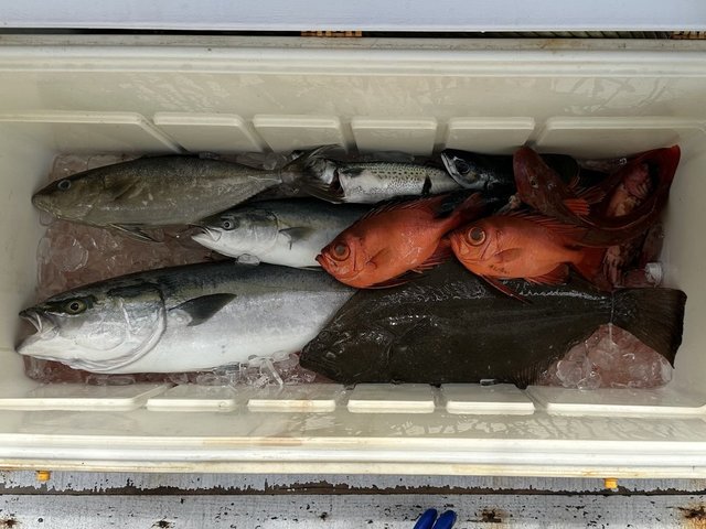 根魚五目船、アジ・サバ30~40尾。 カンパチ・ワラサ・ソイ・カサゴなど掛りました。 青物まわってきてるので面白いですよ~!! 座席は予約の際に伺います。 早い順になるのでご期待に添えない場合も御座います。ご了承下さいね。 詳しくは電話確認でお願い致します。 貸し竿、投入機(数に限りが有ります) レンタルの方は予約の際に必ず申し出てください。ご用意出来ない場合があります。 ※必ずライフジャケットの着用をお願いします。無い方は必ず申し出て下さいね。 《日程》 8月15日(金)根魚五目船(空き残り3名) 16日(土)根魚五目船(受付終了) 17日(日)根魚五目船(空き多数) 18日(月)定休日 19日(火)根魚五目船(空き多数) 20日(水)根魚五目船(空き多数) 25日(月)休み 26日(火)根魚五目船(空き多数) 27日(水)根魚五目船(空き多数) 30日(土)根魚五目船(空き多数)
