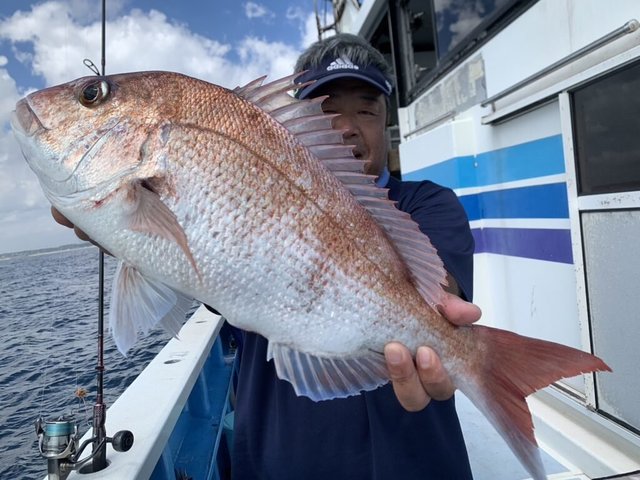 マダイ 0.30~1.10kg 1~3匹 ヒラマサ 最大4.60kg ヒラメ トラフグ イナダ ショゴ ハナダイ マゴチ ガンゾウ 午前テンヤ。