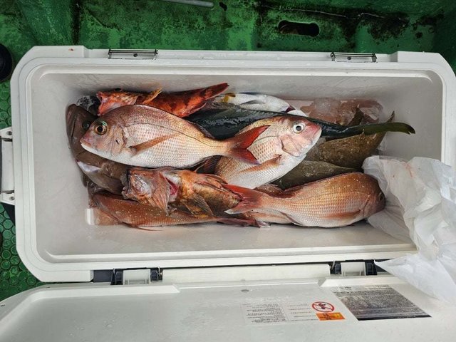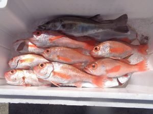アカムツ 0~3匹 オニカサゴ ワラサ スルメイカ ムシガレイ ドンコ アジ アマダイ ユメカサゴ ホウボウ サバ 朝から、ポツポツの食いでした。 食いが浅く、バラシも多数有り数伸びず。